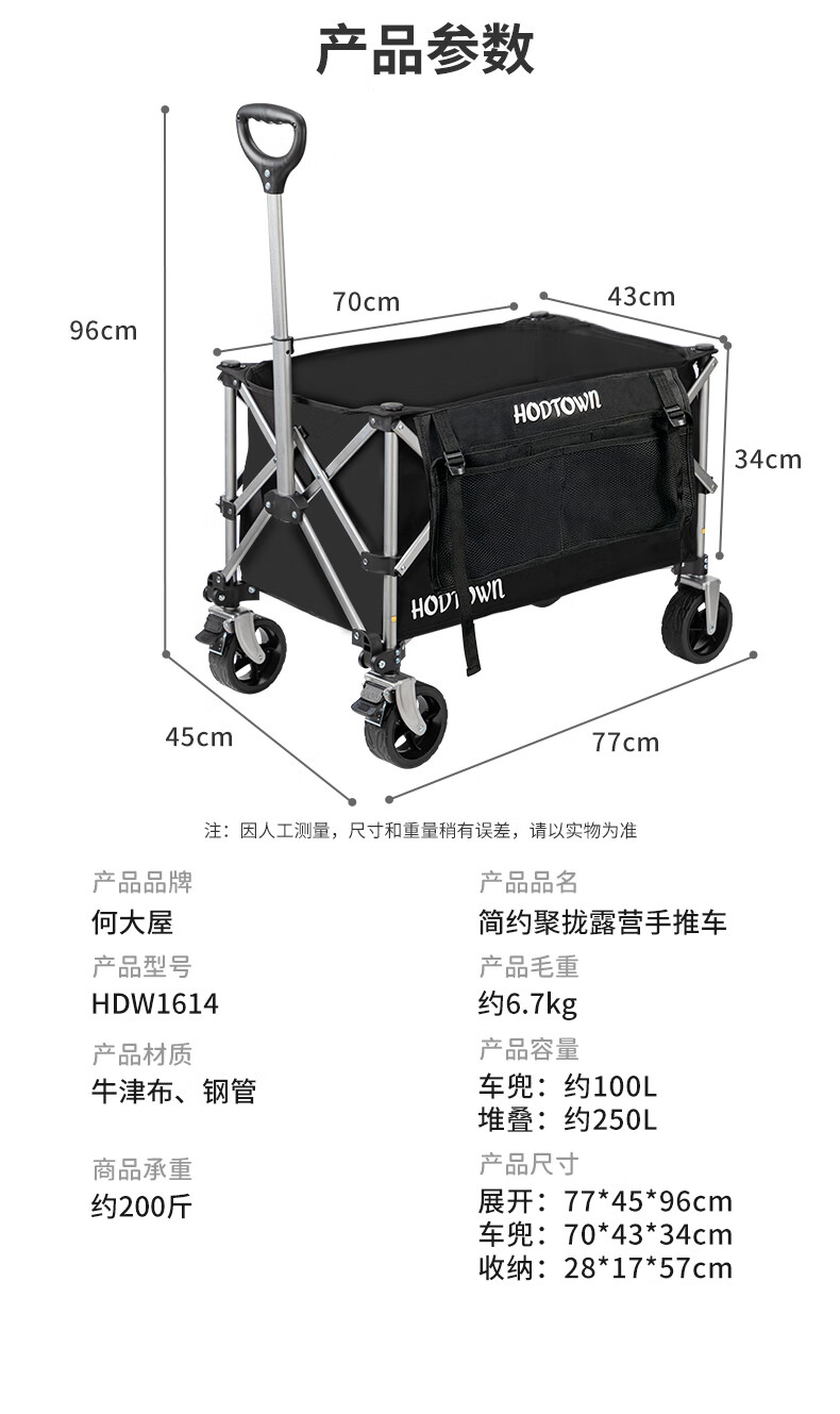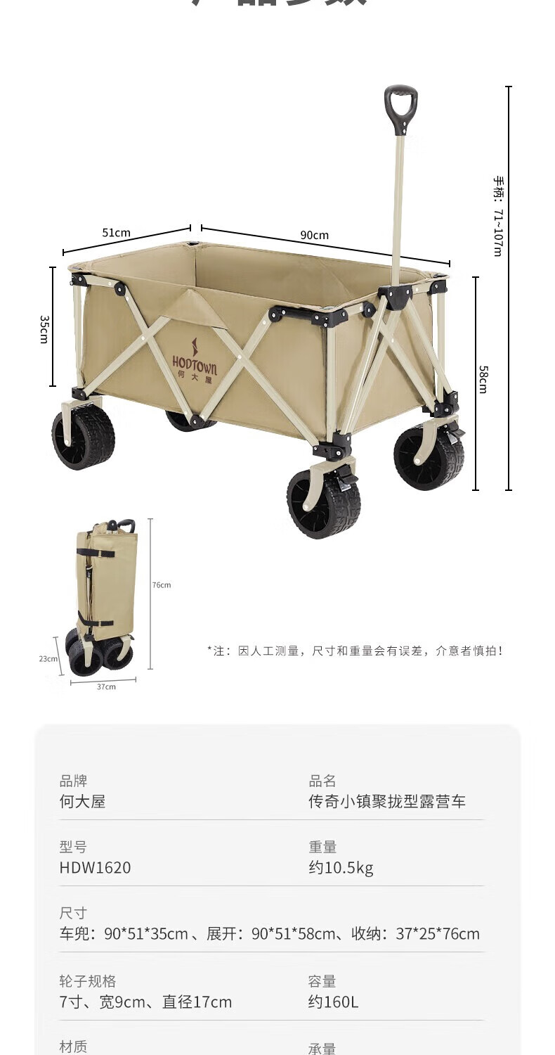 何大屋(Hodtown)户外营地露营车野营小拖车野餐手推车可折叠轻便携 HDW1610野营车 50L 无刹车