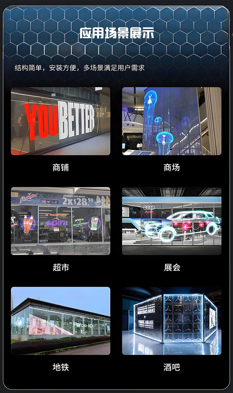 LED晶膜屏透明玻璃贴膜屏全彩led魔方商场宣传展示格栅屏橱窗透光led全息广告显示透明冰屏 【项目定制】