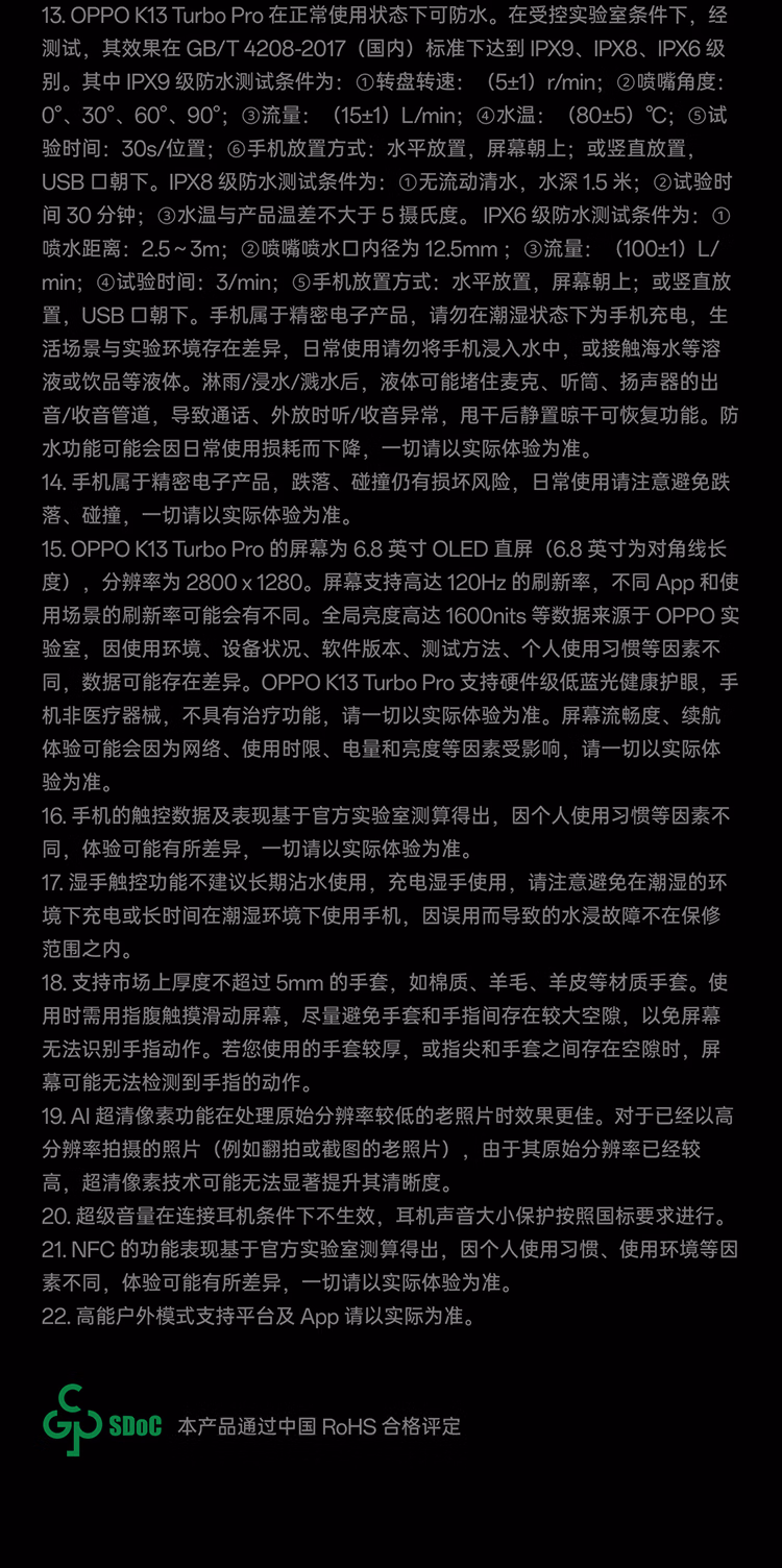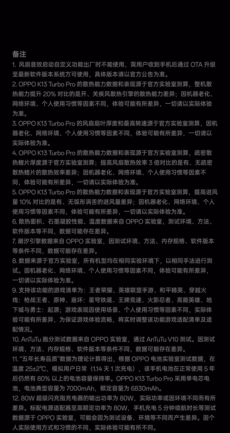 OPPO【咨询有礼】OPPO K13 Turbo Pro 疾风散热引擎 潮汐引擎 第四代骁龙8s 7000mAh大电池 5G手机 16+512GB 黑武士