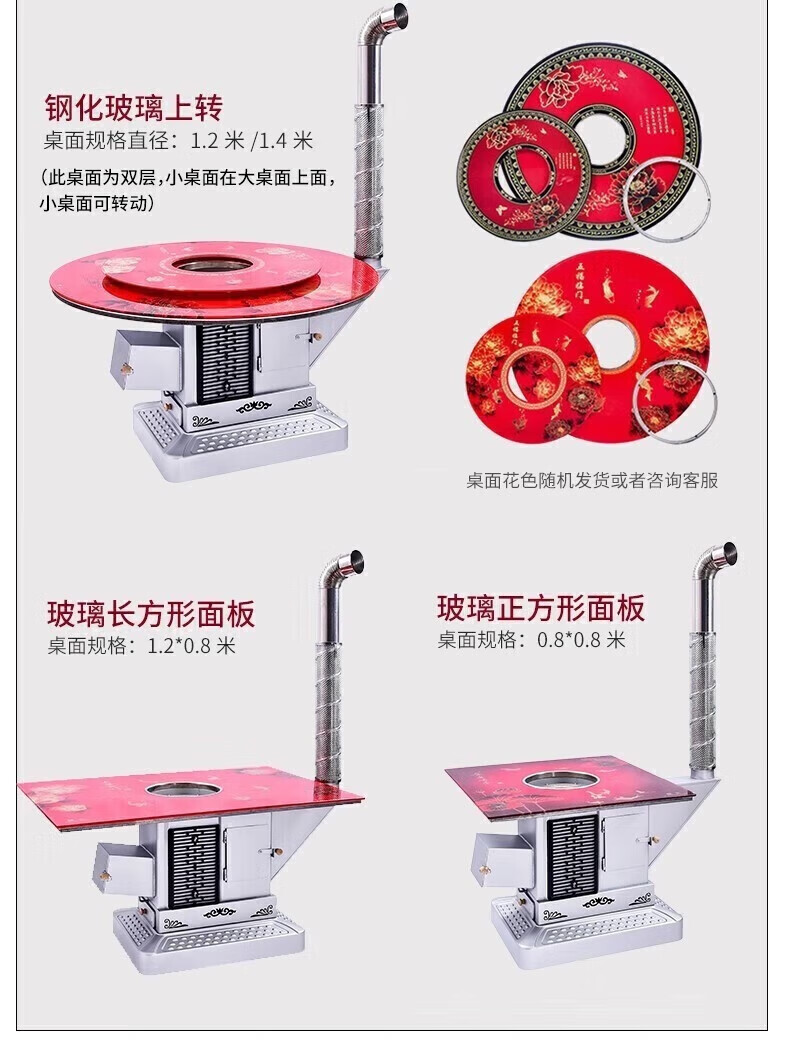 能师傅【送货上门】气化炉家用室内烤火炉柴煤两用节能无烟柴火炉灶农村 1.2米防爆玻璃桌面【 6-8人 气化炉 】