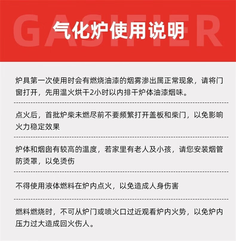 气化炉收到,保护的很好没有一点磕碰,安装简单,炉体做工精细,用料扎实,试烧了散燃非常好。