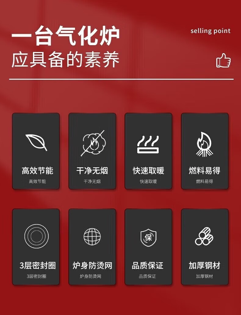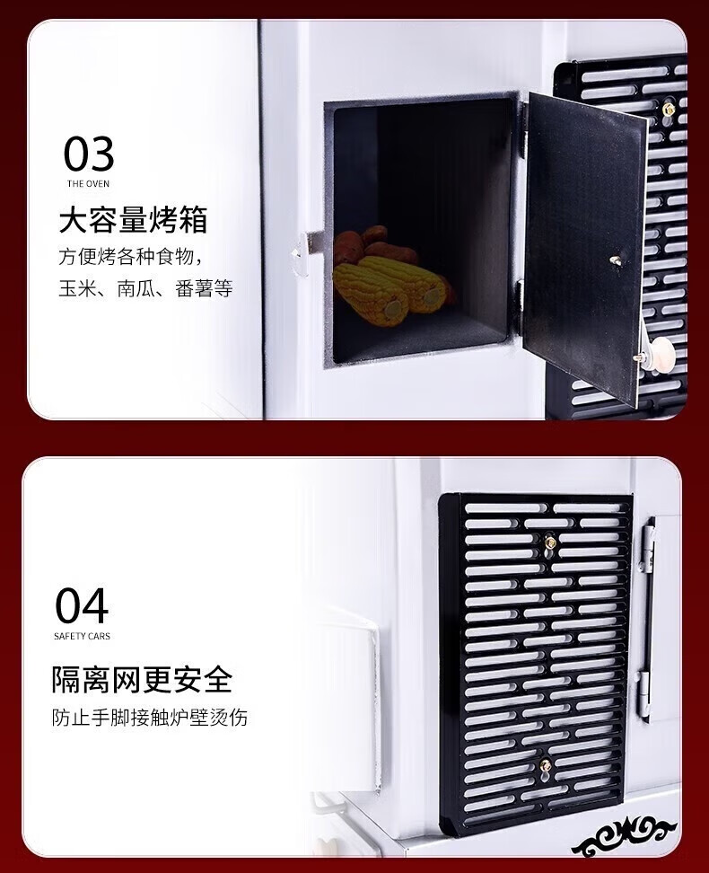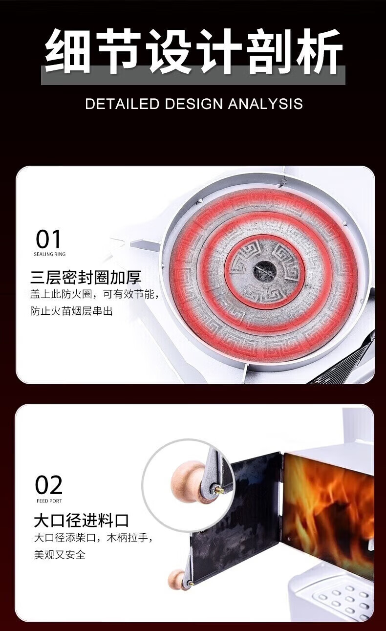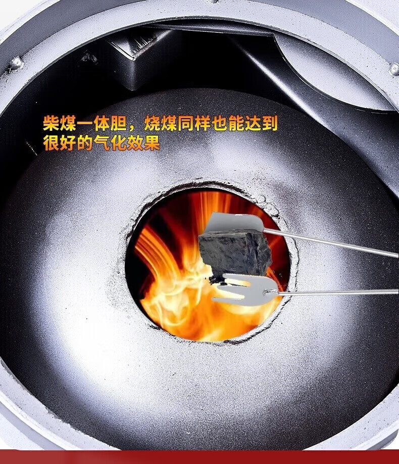 新款冬季农村家用室内柴煤两用无烟气化炉铸铁燃煤内胆柴火取暖炉 烧不烂高端铸铁烤箱气化炉+烧火