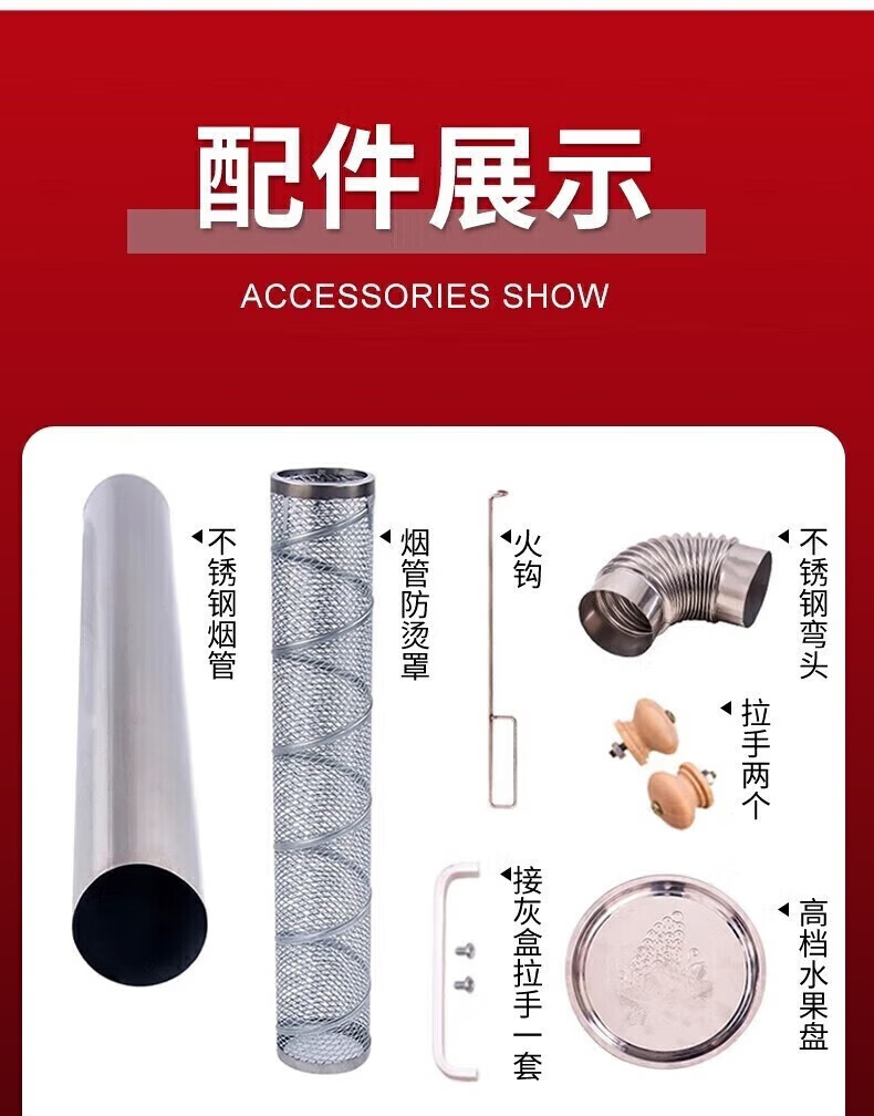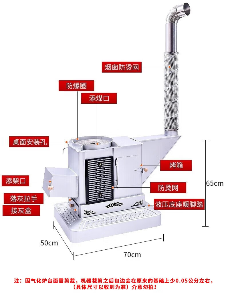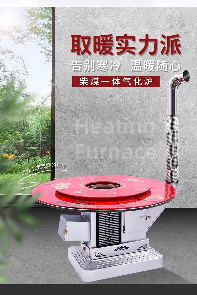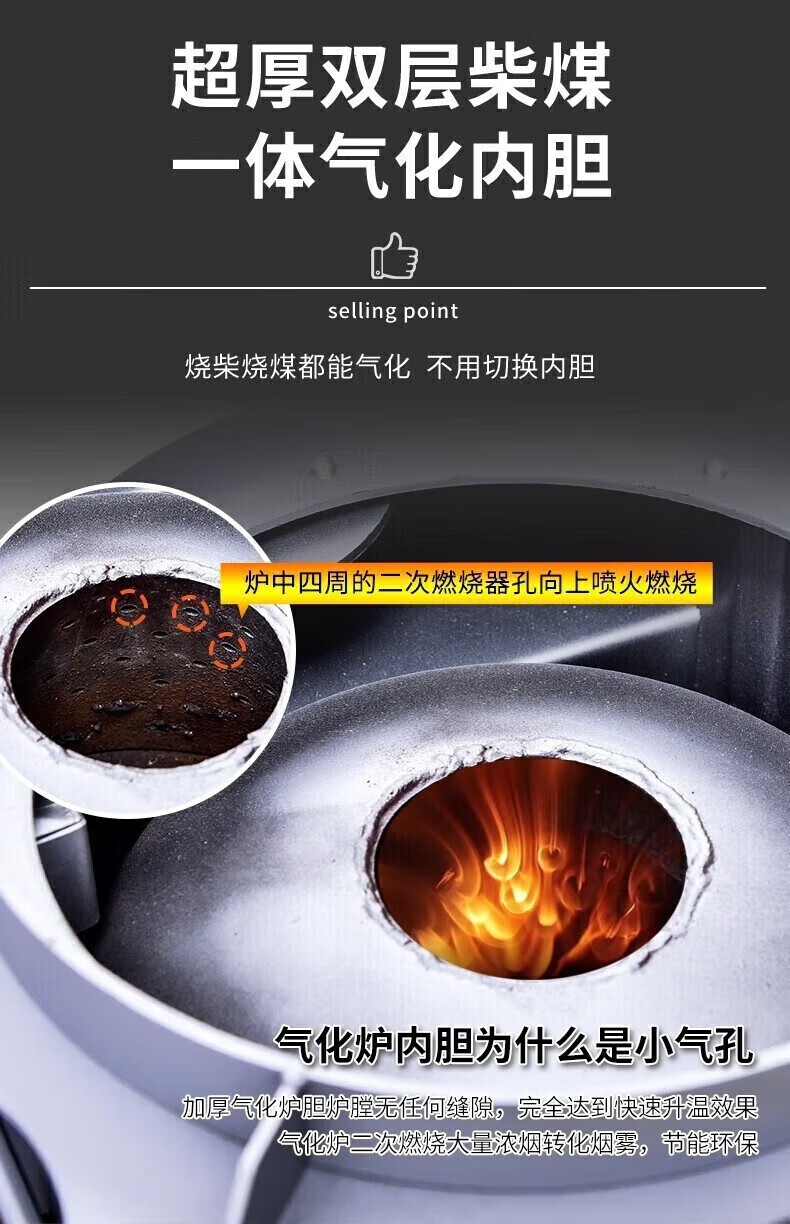 气化炉柴煤两用取暖炉农村烤火炉柴火灶家用农村室内加厚回风炉 0.8米不锈钢(柴煤两用)【 2-3人 气化炉】