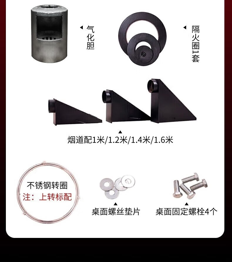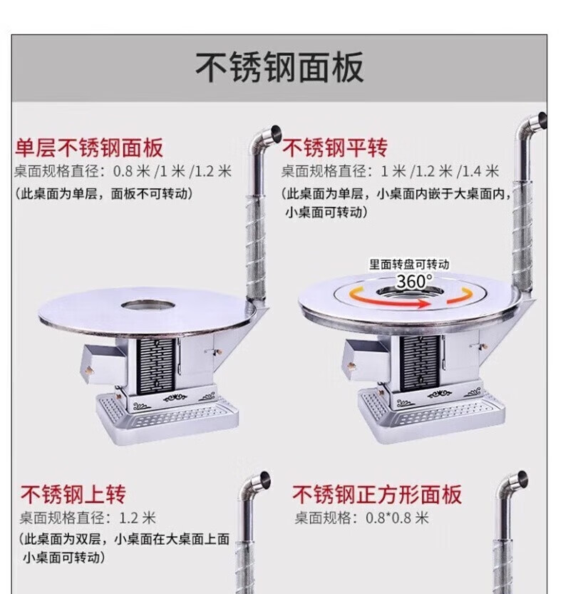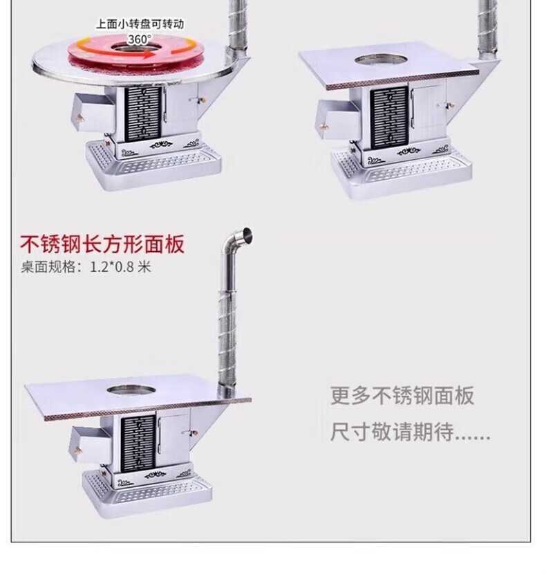 能师傅【送货上门】气化炉家用室内烤火炉柴煤两用节能无烟柴火炉灶农村 1.4米平转特厚不锈钢桌面【8-10人 气化炉】