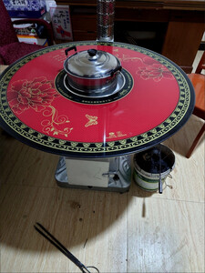 璞灶旺冬季柴火灶加厚加高农村取暖炉烧柴家用节能柴煤两用多功能回风炉 1米圆桌不锈钢(柴火炉)