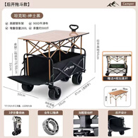 野徒者露营车户外推车野餐车儿童可躺露营装备折叠摆摊营地车小买菜车 曜石黑-16寸【飞机轮】+90桌子 升级后开门款