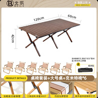 北乐户外便携式露营蛋卷桌可折叠桌椅子野餐摆摊桌椅野营野炊装备套装 胡桃木色大号【120cm】+椅子*6