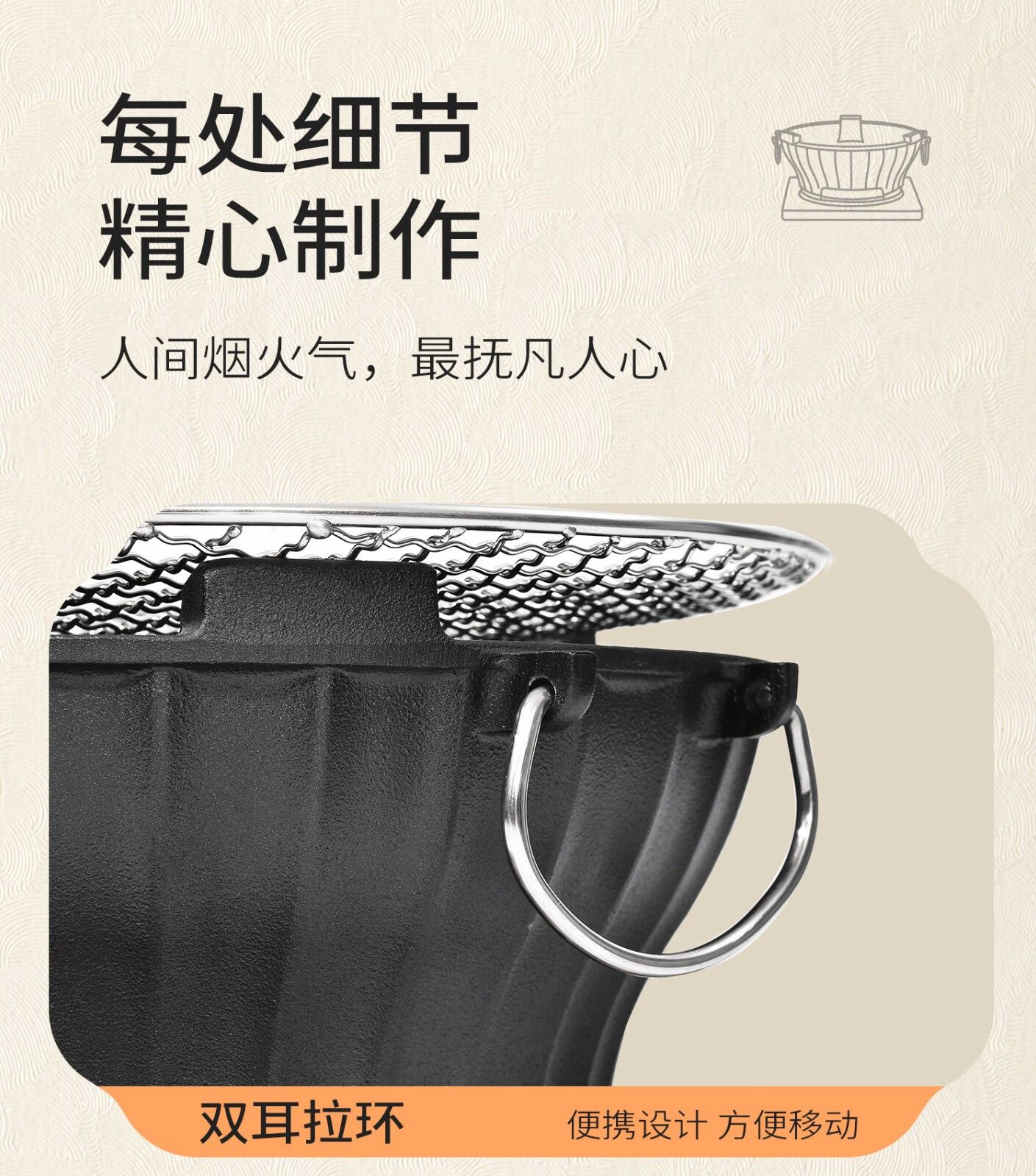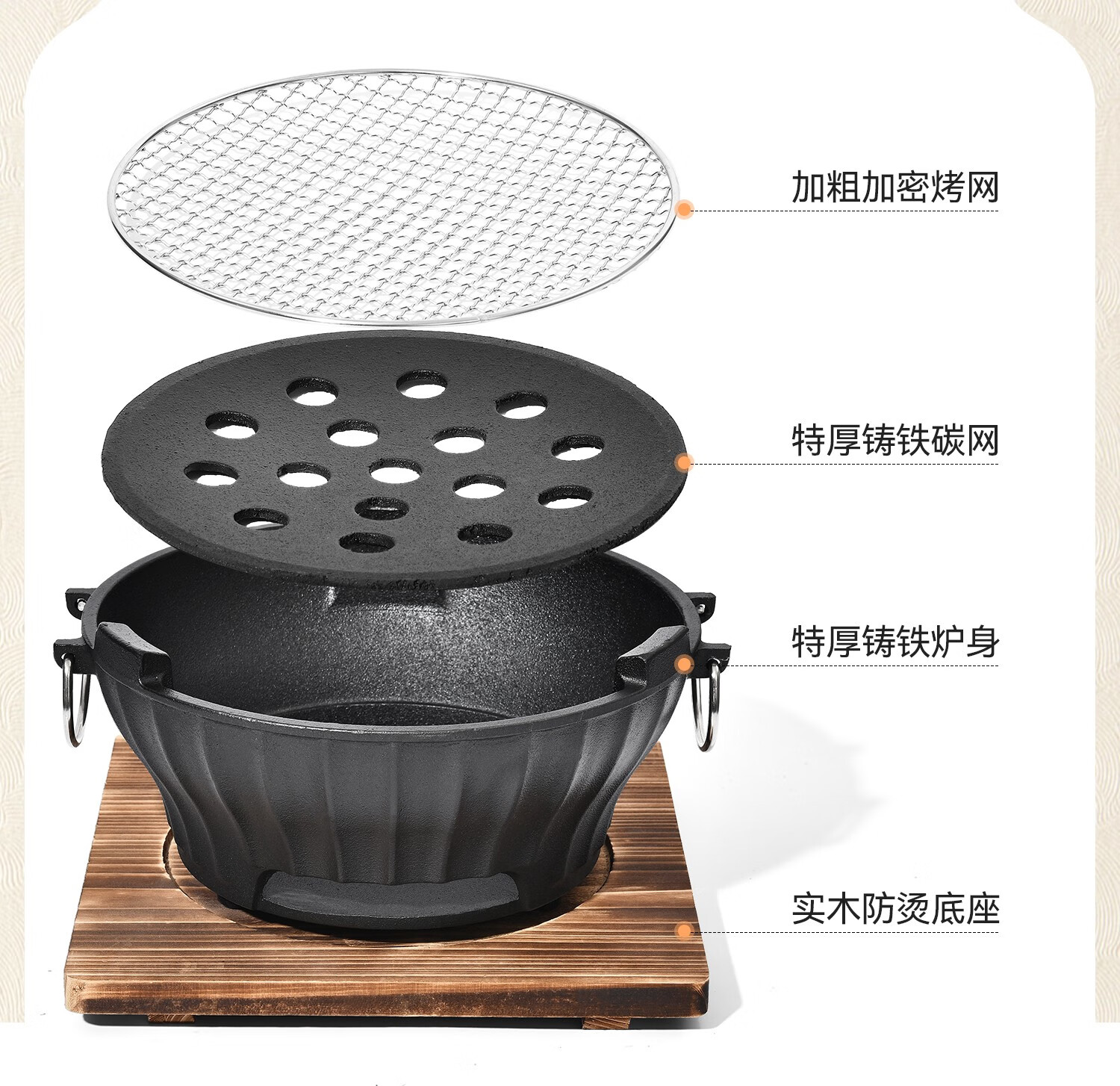 抽屉式圆形炉体铸铁炭炉冬天围炉煮茶取暖火锅烧烤铸铁炉圈嵌入用 炉面直径36厘米可调火力双层炉炉高21