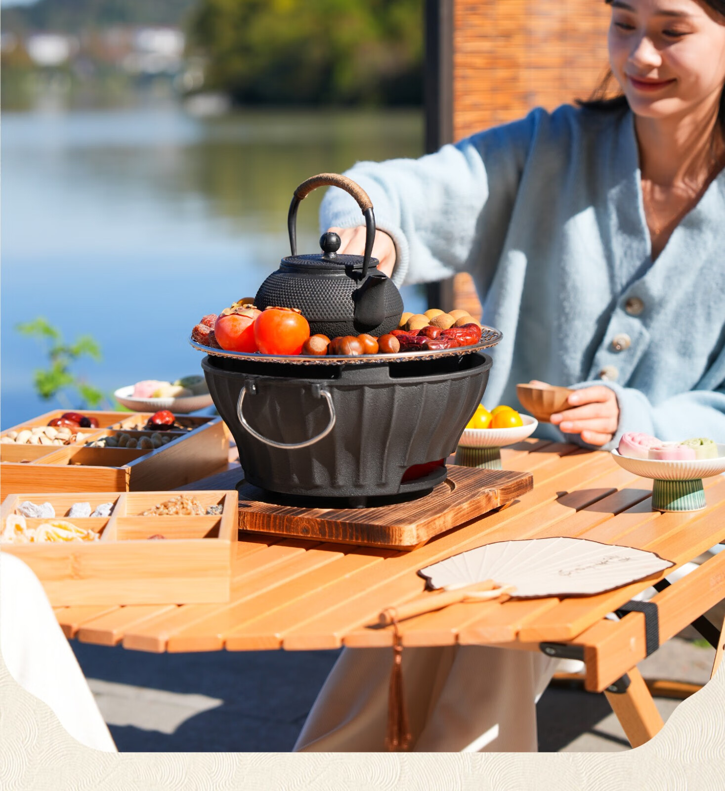 探险者探险者围炉煮茶套装电碳两用围炉桌烧烤煮茶一体烤火炉家用围聚煮 [60cm]电碳两用围炉桌