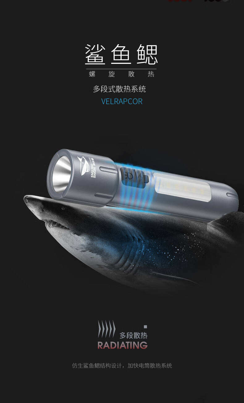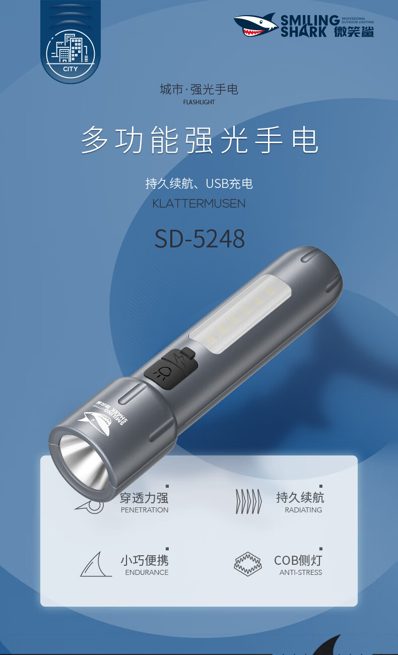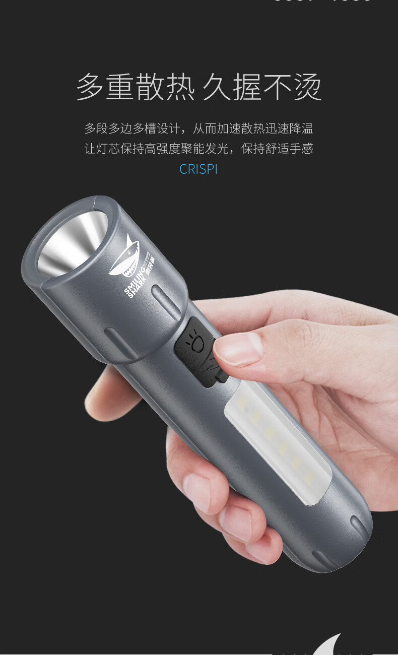 微笑鲨强光手电筒小型迷你超亮多功能家用户外学生老人应急led照明灯 【低容量】带侧灯 小巧轻便/USB快充/超长续航