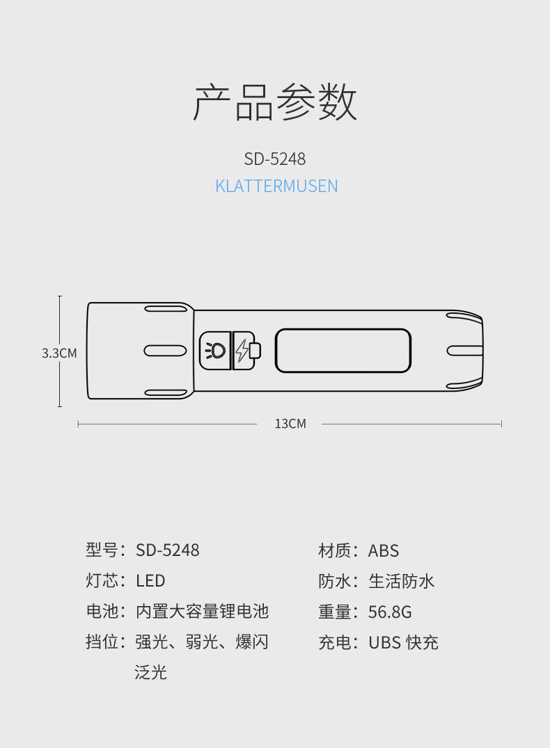 拿着方便无论材质还是做工都超出了预期,超值,很亮,还带有侧灯,还是C口充电的,充一次电,可以用好几个小时