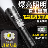 微笑鲨强光手电筒充电式激光小型便携镭射超亮户外远射家用应急照明灯 低配款【100毫安】普亮散光 伸缩调焦+超长续航