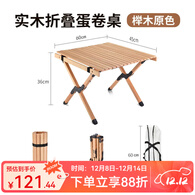 原始人 户外桌子便携式折叠蛋卷桌野餐露营装备野营实木自驾游车载桌 60CM原木色蛋卷桌