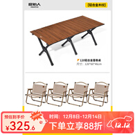 原始人蛋卷桌户外折叠桌便携式野餐桌椅露营装备用品野炊野营套装 【铝合金】120蛋卷桌+木色卡其克米特*4