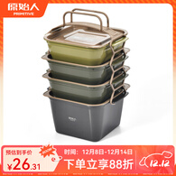 原始人户外餐具露营便当盒春游野餐移动收纳便携式外出手提式保鲜便当盒 野餐盒-四件套【可重复使用】