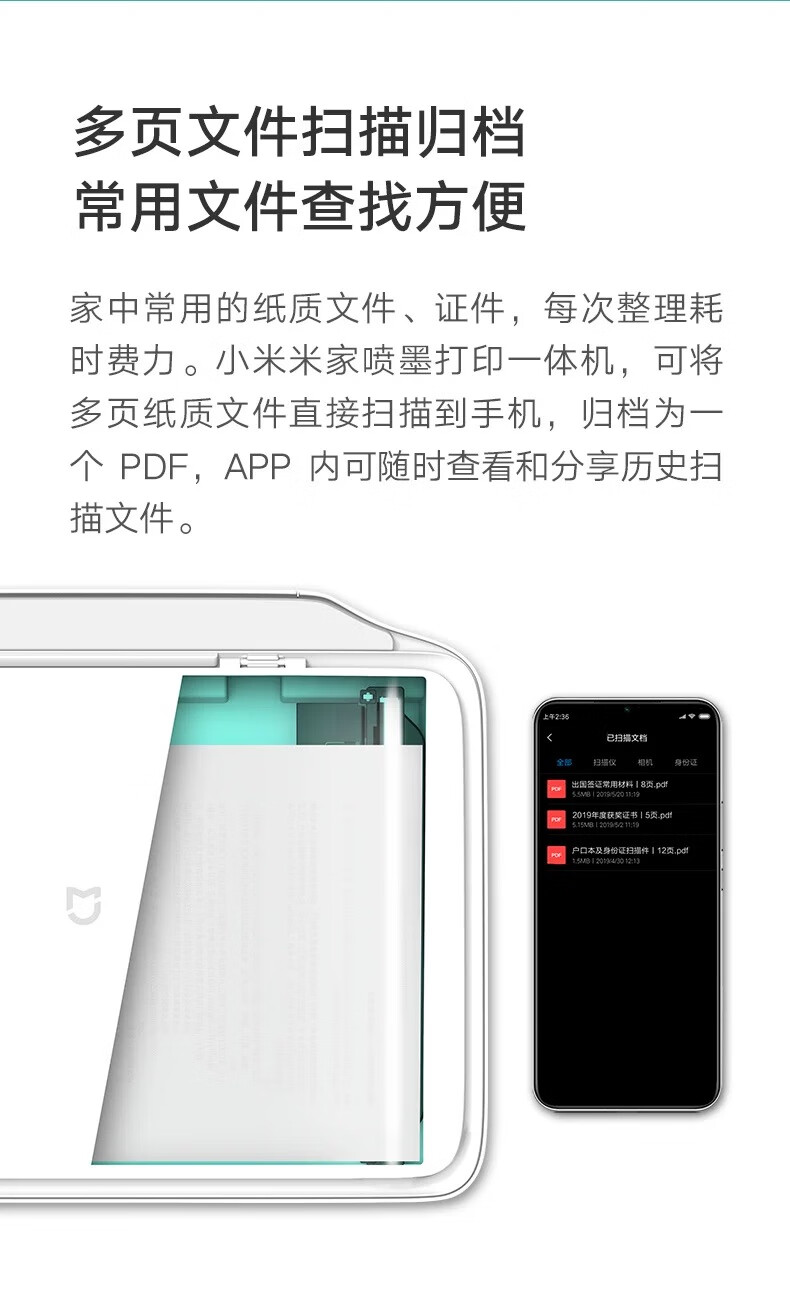 小米(MI)米家喷墨打印一体机 打印 复印 扫描 无线三合一 家用打印 学生打印 手机APP无线打印 小米米家喷墨打印一体机【送50张打印纸】