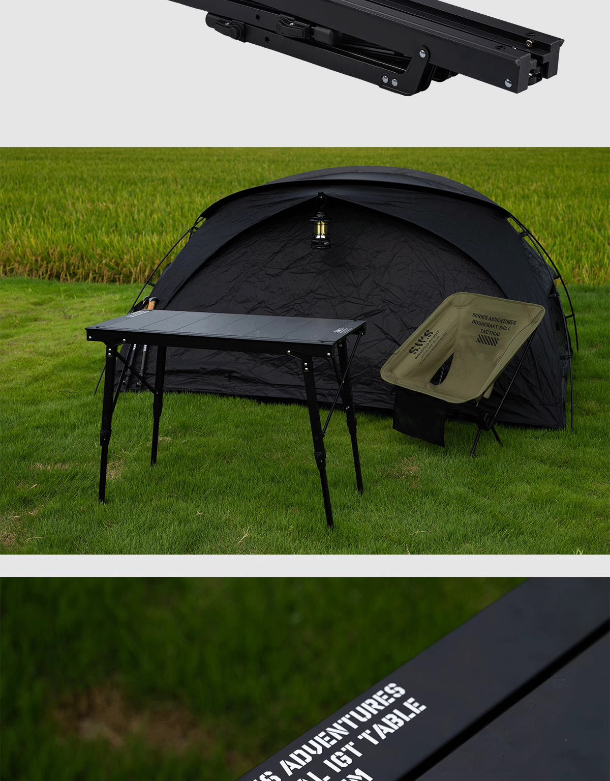 Guide Series户外铝合金折叠桌露营桌便携升降沙滩烧烤桌加宽桌自驾游车载桌 新 加宽金属 木纹黑色