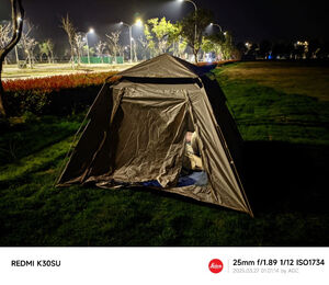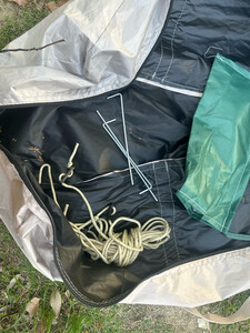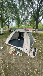 物流发货很快,收到很大。 幸亏露营车买的特大号,帐篷收起来也能放进去。 一个人也能操作好,一提就打开了,收起来也方便。 空间够大,几个人在里面都够。躺下的空间也足够! 唯一有一个不好的地方“地钉太细了”。土地硬的情况,钉子使劲插的话就弯曲了,这个非常不好。(之前买的1米5的帐篷也是探路者的钉子就很粗,很牢固)这个2米4✖️2米4的反而钉子很差劲,帐篷越大钉子不应该更好吗~?