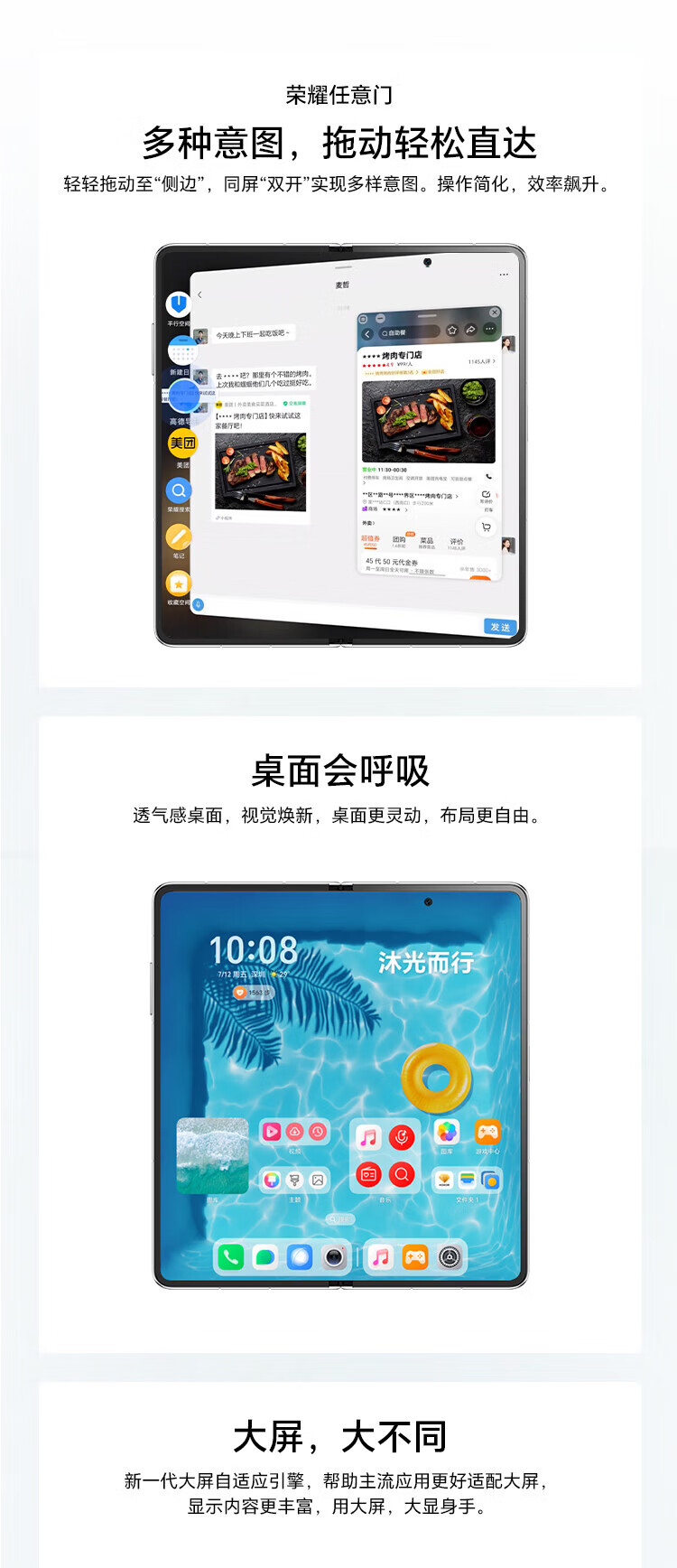 AI大模型,折叠屏,轻薄,LTPO屏幕,高频PWM调光,全焦段影像,潜望式长焦,无线充电,NFC,红外遥控,大底主摄