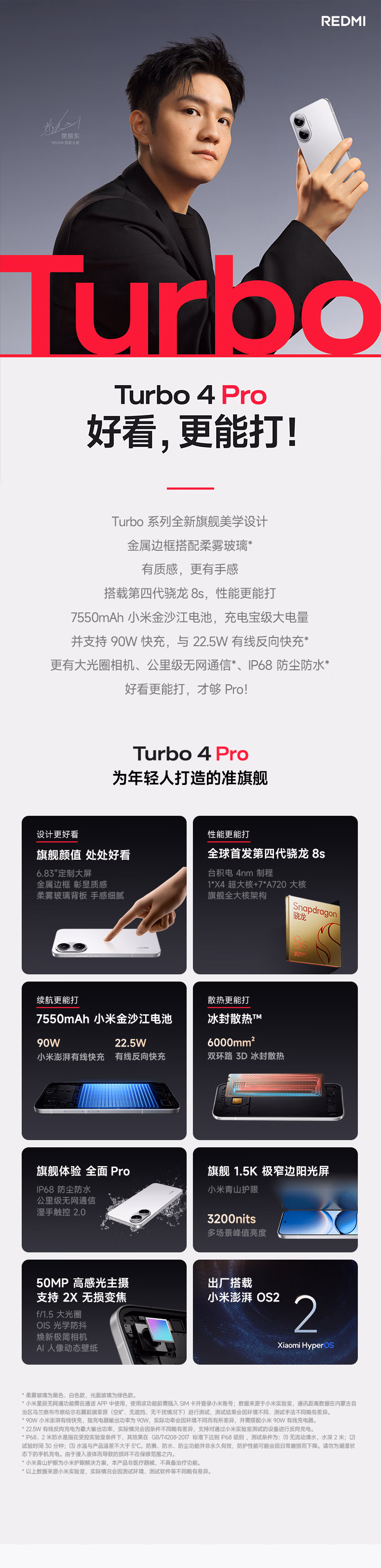 小米15 Pro 16GB+1TB 骁龙8至尊版 分期 免息 进店选 红米Turbo 4 Pro 第四代骁龙8s 7550毫安 【黑色】12GB+256GB 【官方标配】一年全国联保一年店铺延保
