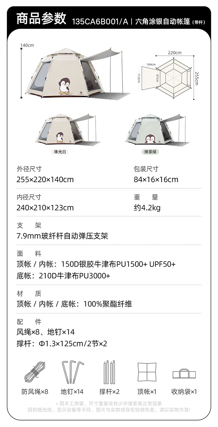 骆驼企鹅萌趣便携式折叠自动帐篷户外露营2025新款帐篷装备全套 大号【珠光白】帐篷+防潮垫