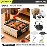 北山狼 电碳两用炉户外烧烤炉围炉煮茶套装无烟烧烤架家用电烤炉 白拼黑N2+1箱速燃炭+800ML铸铁壶