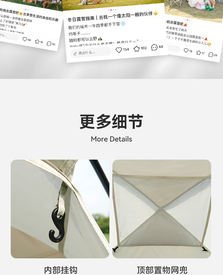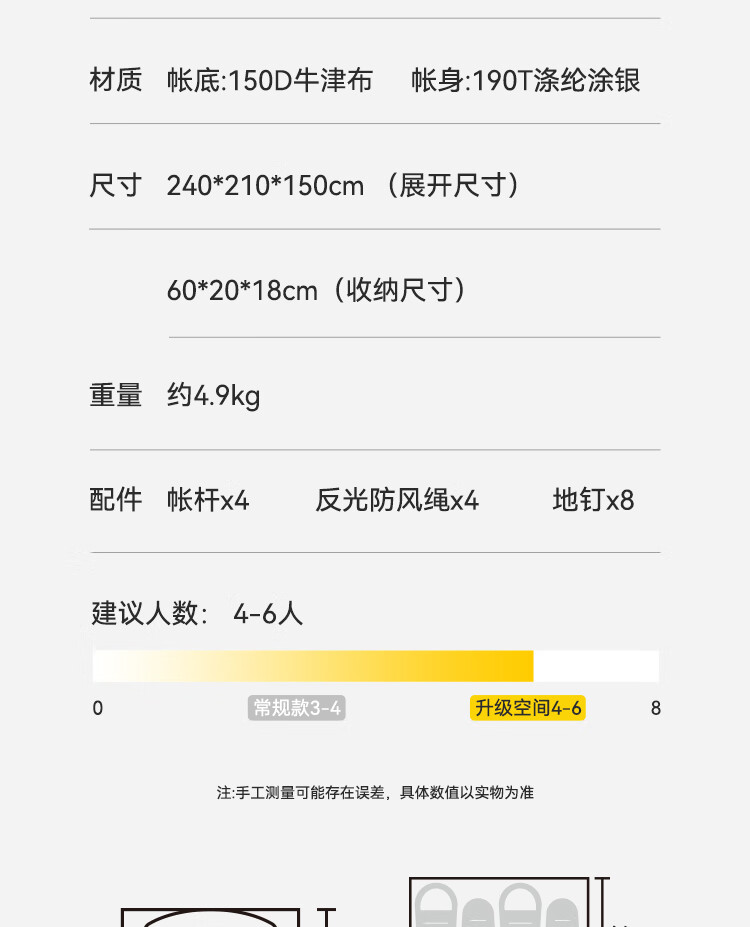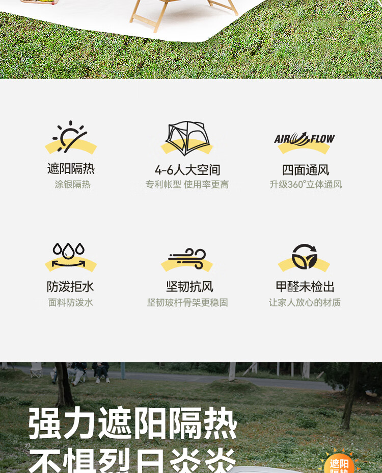 柏潮户外天幕便携加厚黑胶银胶野营野餐抗风防雨遮阳棚露营装备 卡其色 涂银款天幕防雨送全套工 方形长0.36*0.36米丨1人用