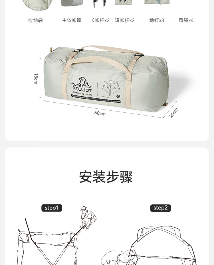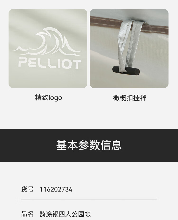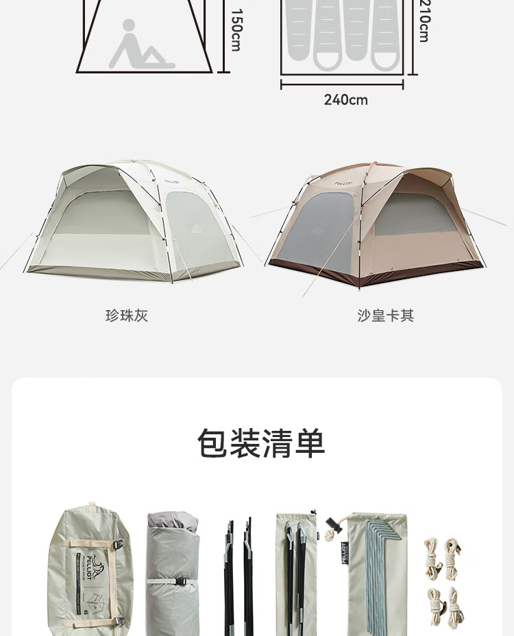 伯希和(Pelliot) 帐篷户外便携式折叠露营装备野营野外公园加厚防雨 珍珠灰 均码
