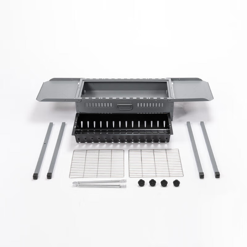 这款烧烤架外观非常经典,大小实用,装起来包不大,提起来重量轻。功能完善,包括提手、夹子、放置物隔板等。细节设计不差于国产不锈钢,关键位置都是不锈钢材质,非常满意,很好。