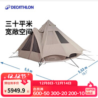迪卡侬帐篷户外精致露营磁吸门多人大型野营金字塔防雨蒙古包 野外露营圆锥形涤棉帐篷Tepee5.2
