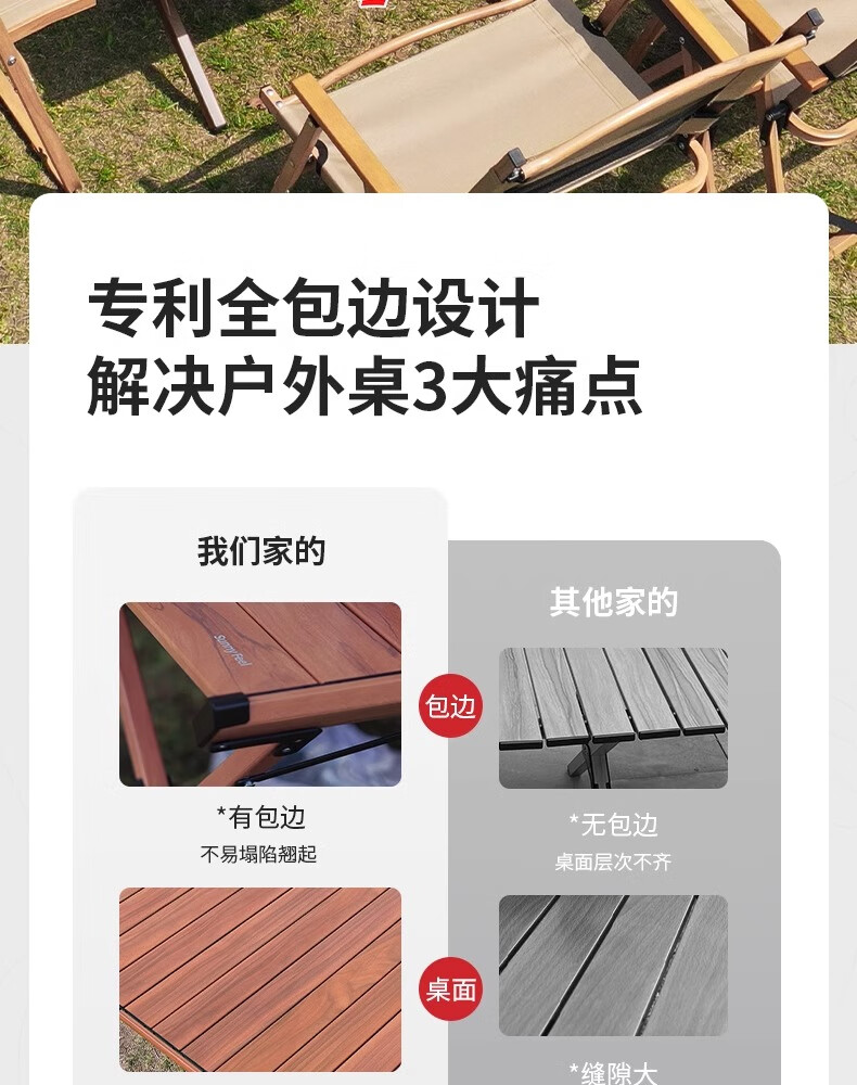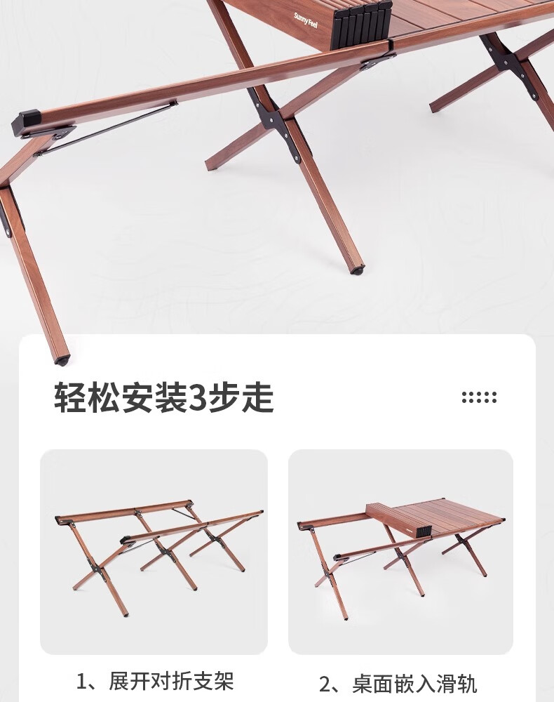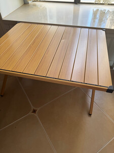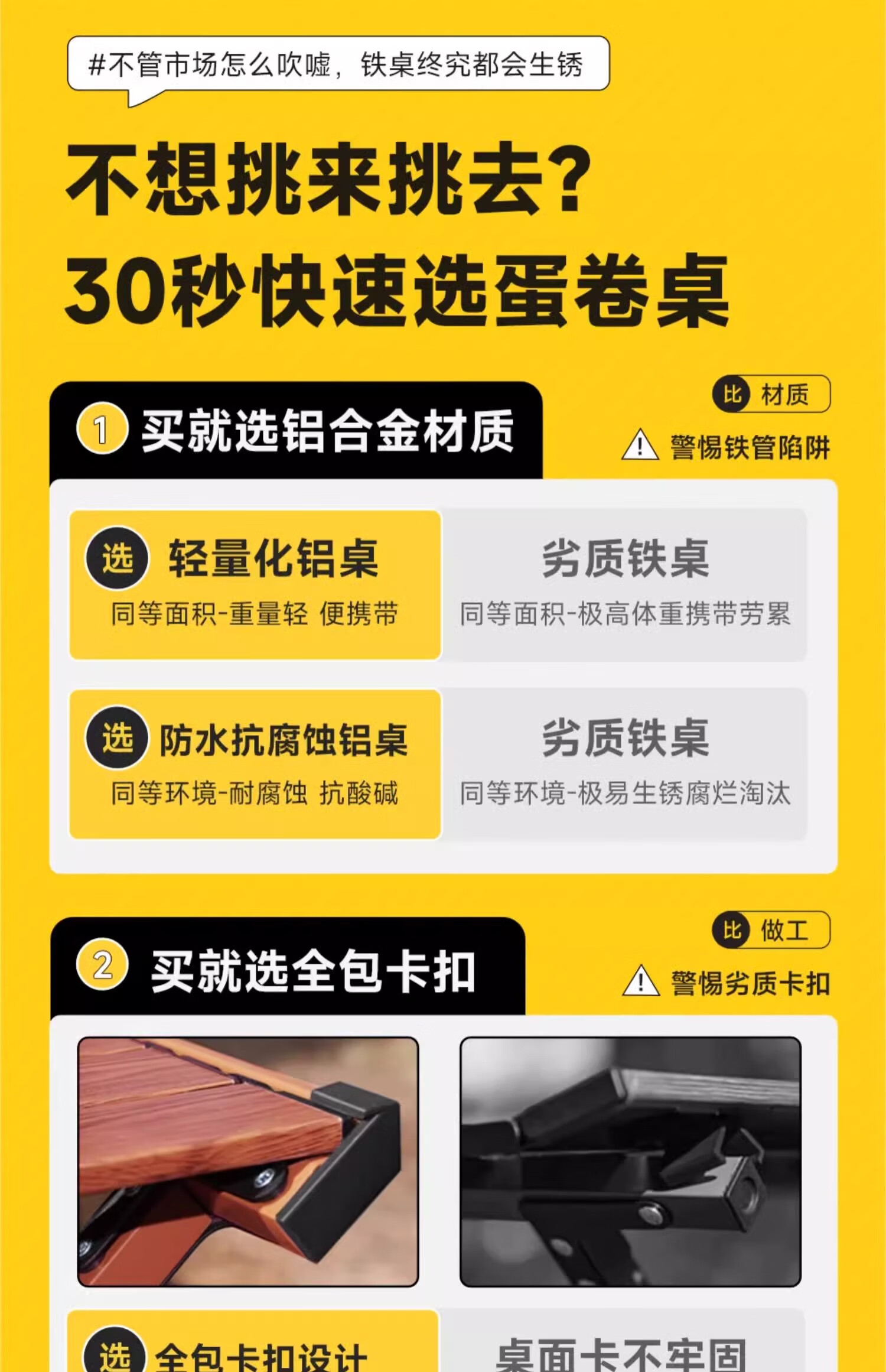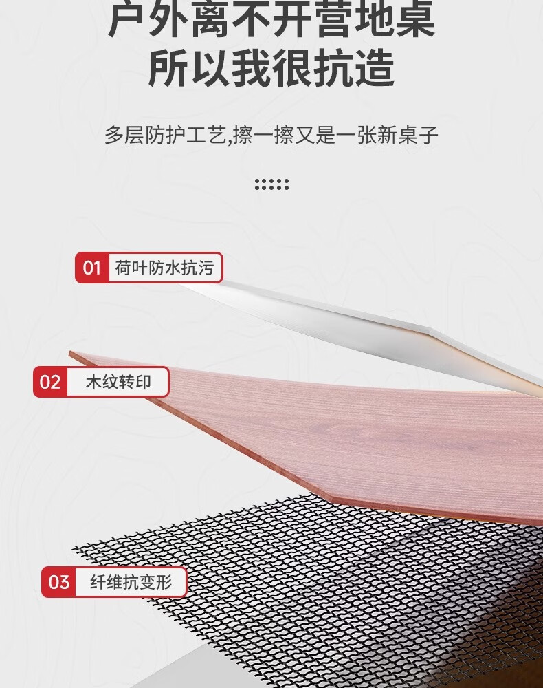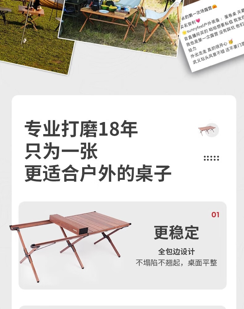 这个桌子我很喜欢,铝合金的不怕风吹雨晒的。而且桌面没有大缝隙,出去露营打牌也很好,朋友看到我买了,也回购了!希望以后多点优惠活动!