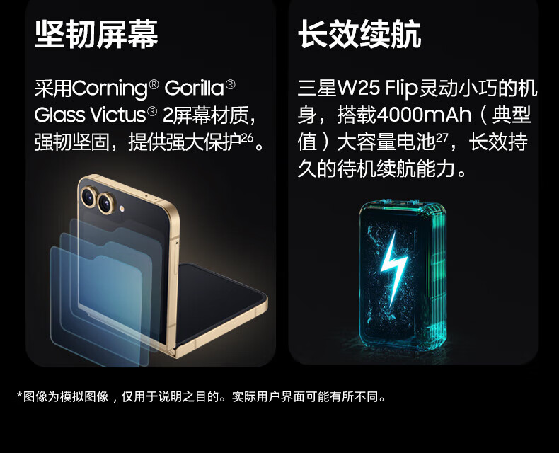 三星(SAMSUNG)三星 心系天下 W25 Flip AI手机 大视野智能外屏 5000万像素 拍照手机 三星折叠屏手机 全网通手机 熠金黑【W23 Flip】 12GB+512GB