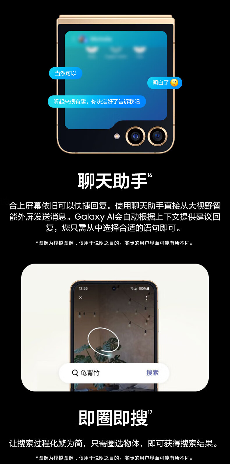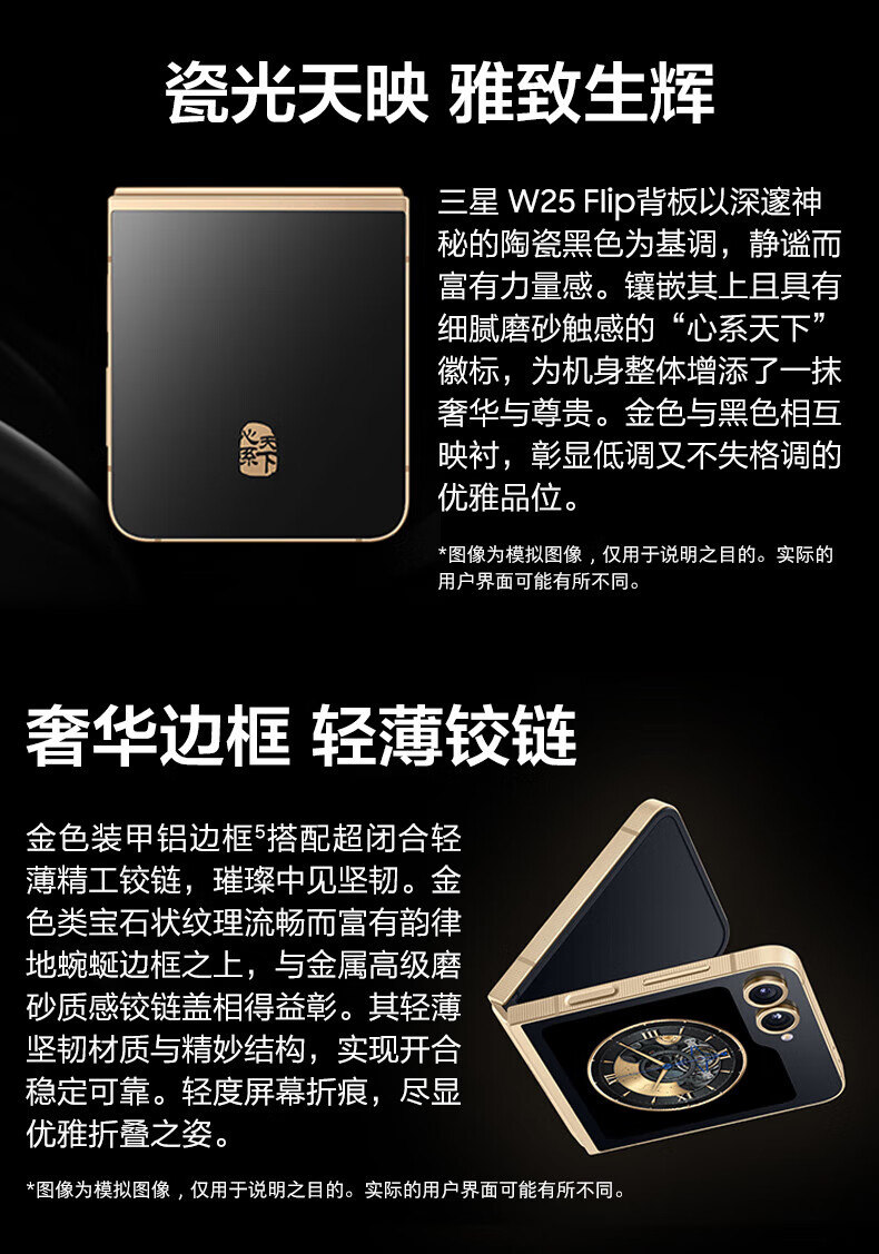 三星(SAMSUNG)心系天下 W23 Flip (W7023) 手机 尊奢黑金 掌心经典 立式自由拍摄系 三星小折叠 熠金黑 12GB+512GB