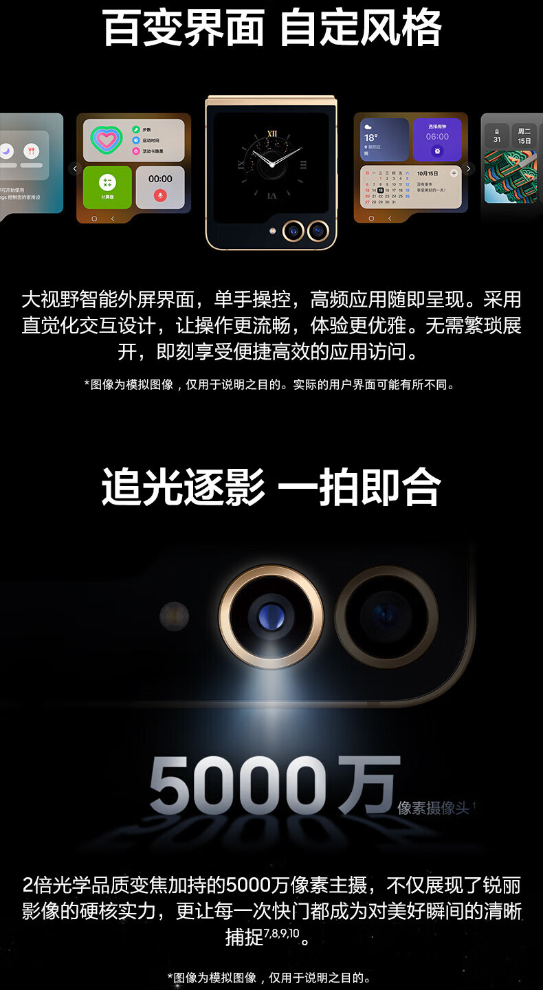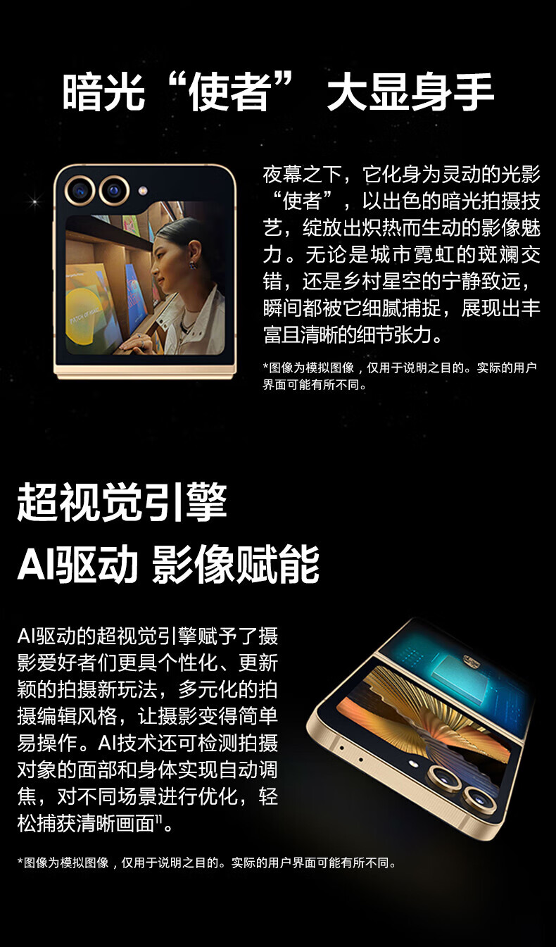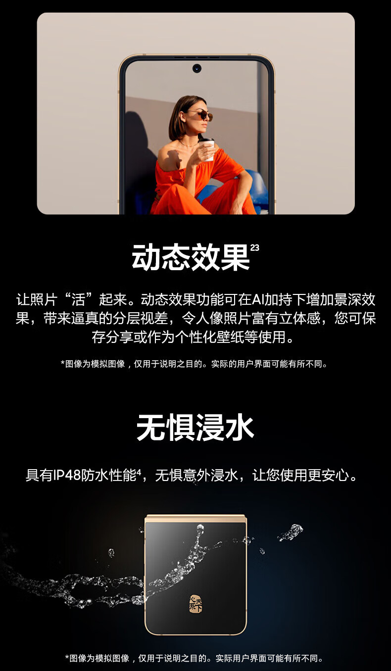 三星(SAMSUNG)Fold W23 心系天下flip 5G折叠屏尊奢铰链 瑰丽边框智能库存手机 W23 Flip熠金黑12+512 单卡