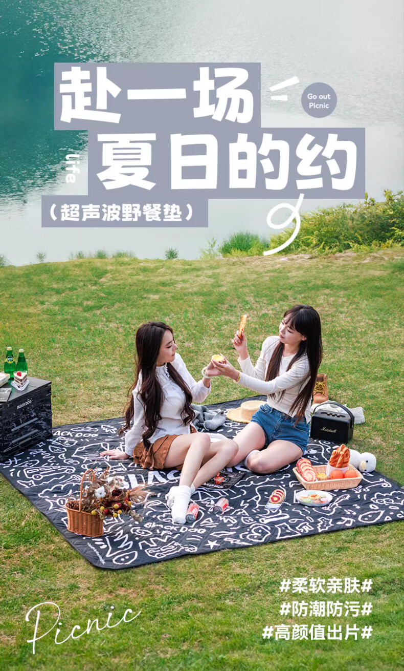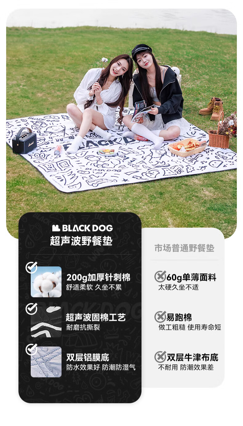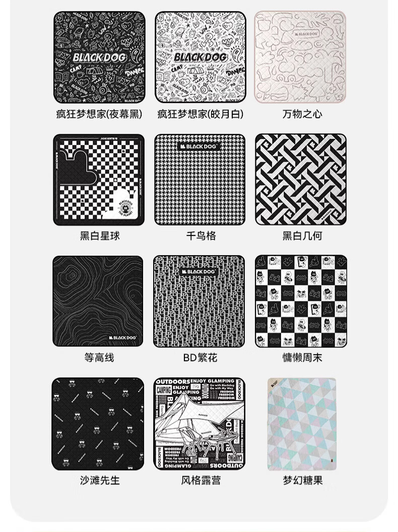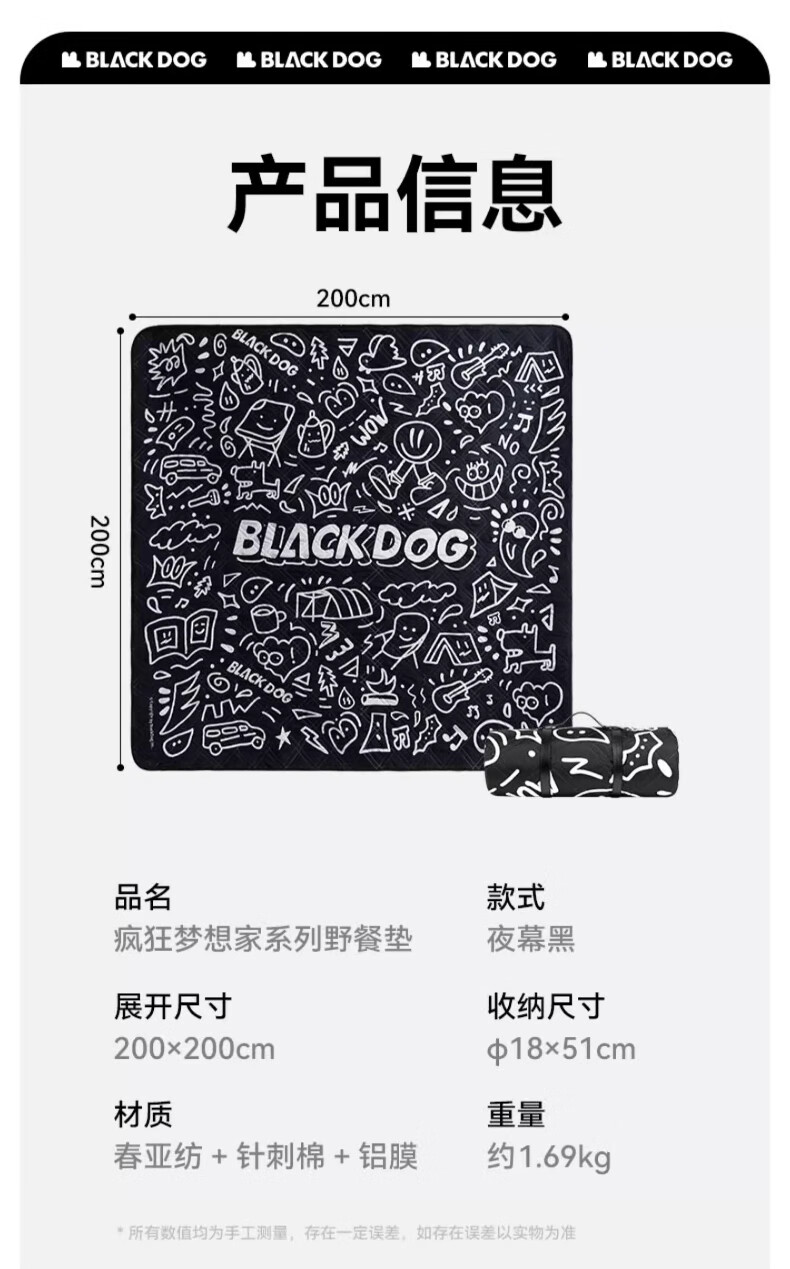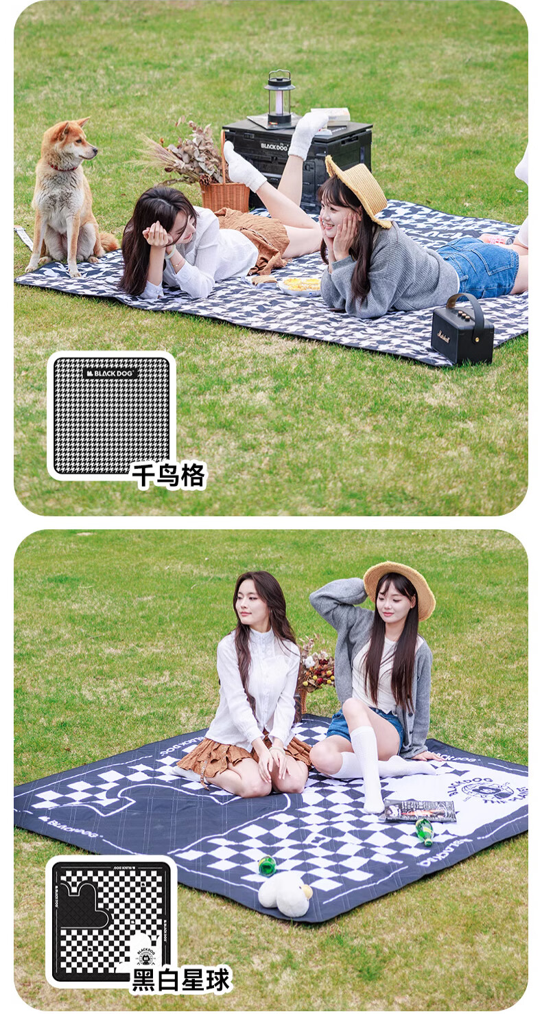 black dog黑狗梦想家户外野餐垫露营防潮垫加厚沙滩地垫防水便携郊游可机洗 疯狂梦想家野餐垫【夜幕黑】
