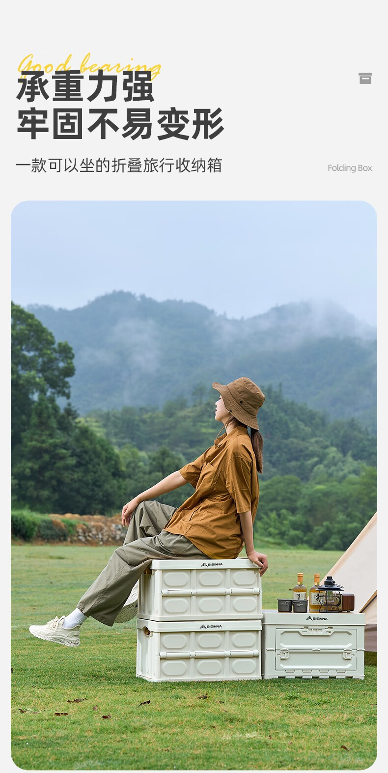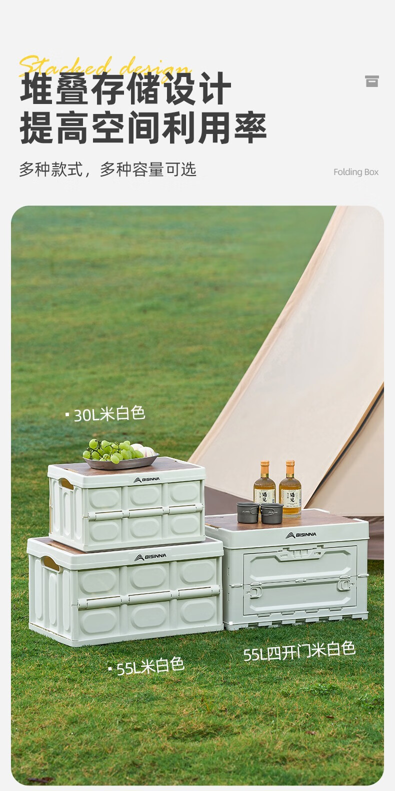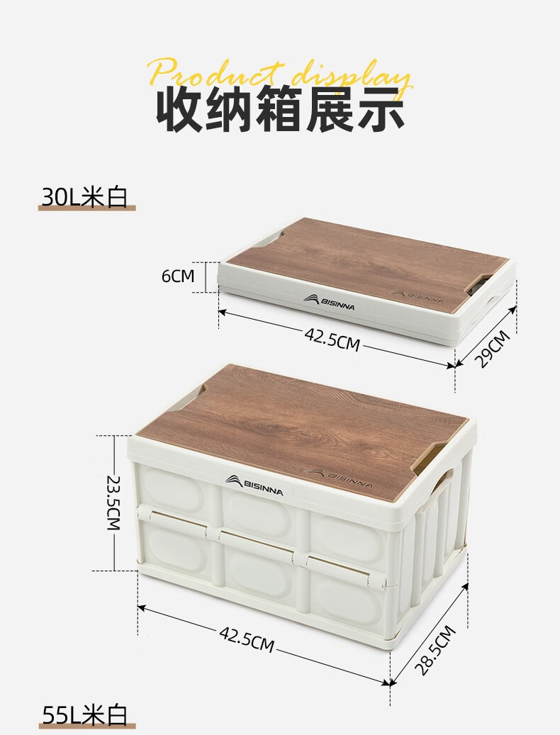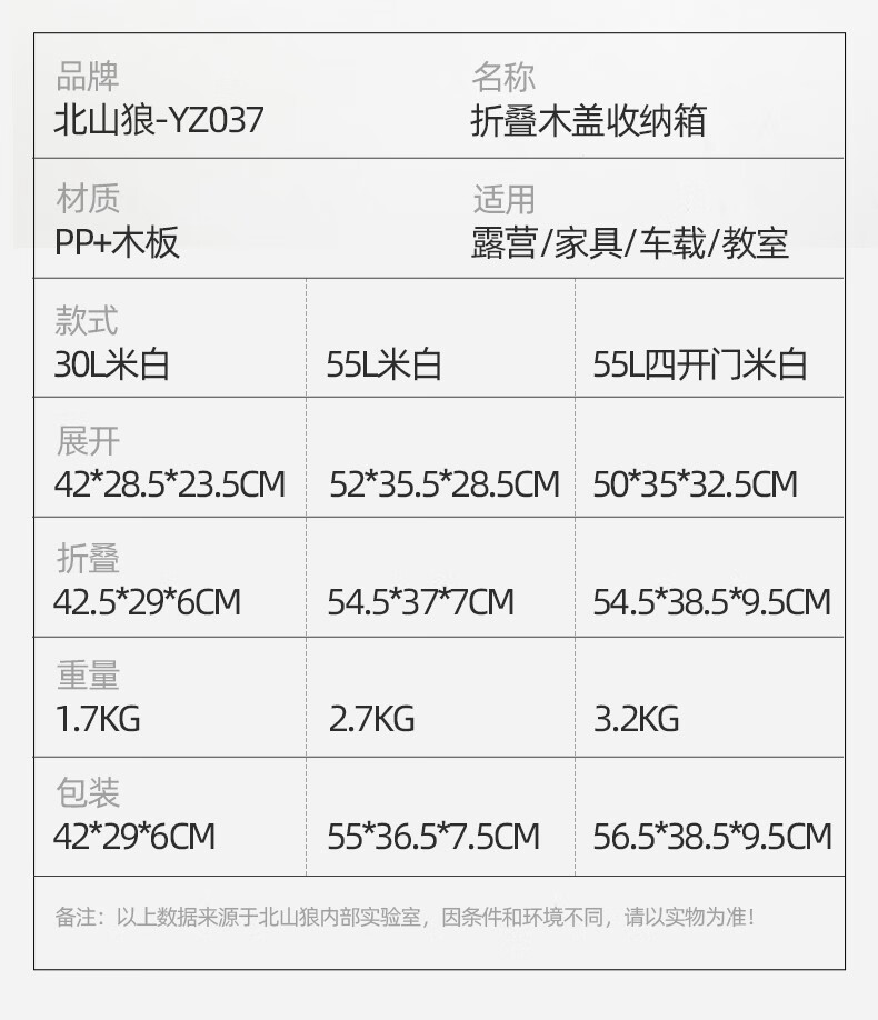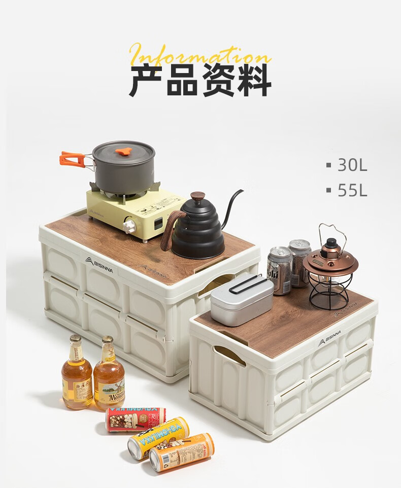 北山狼 收纳箱户外露营可折叠便携野营车储物箱野餐用具杂物箱 30L中号米白