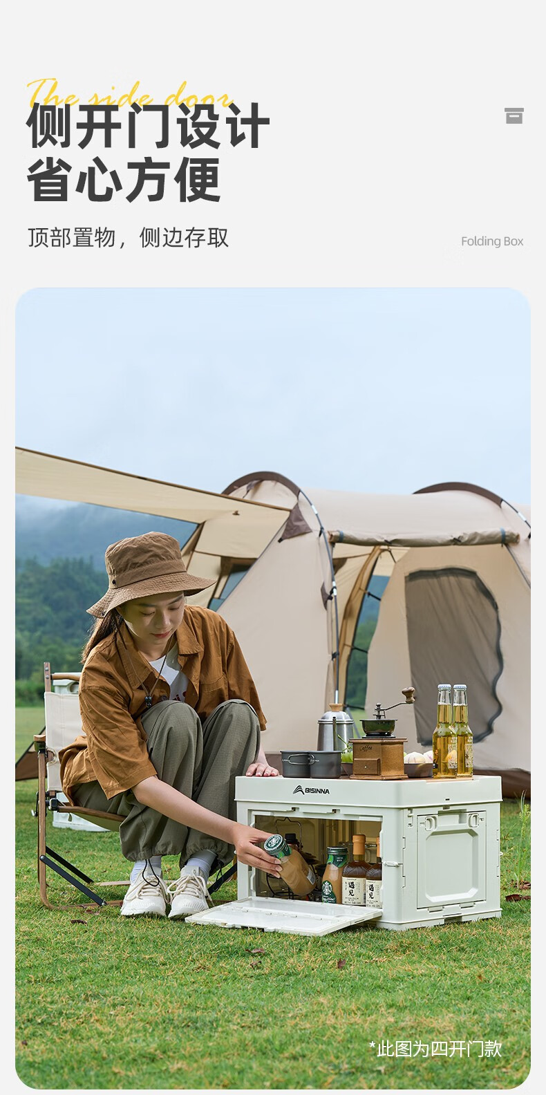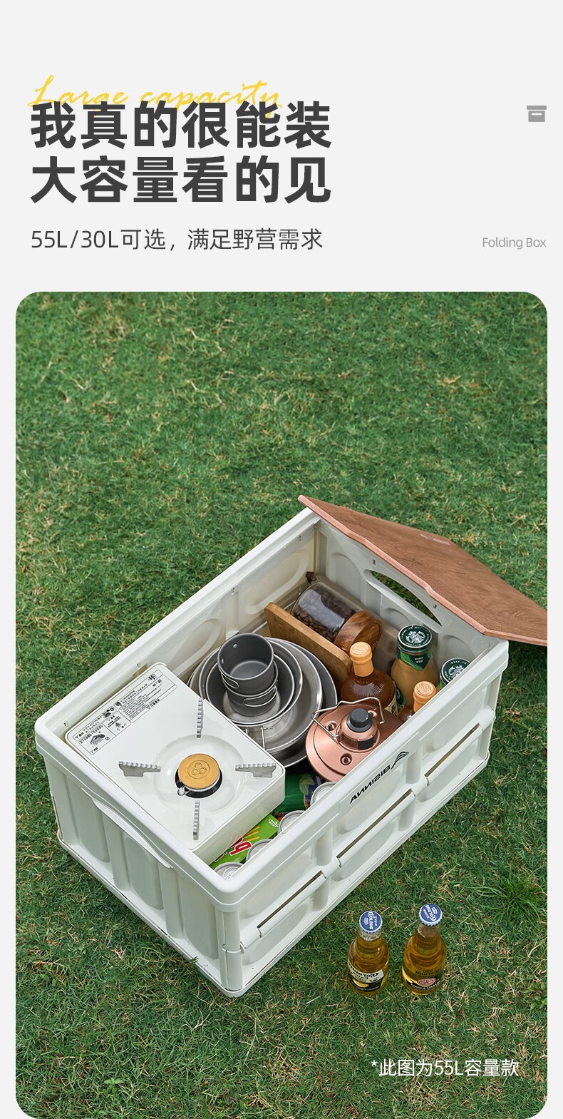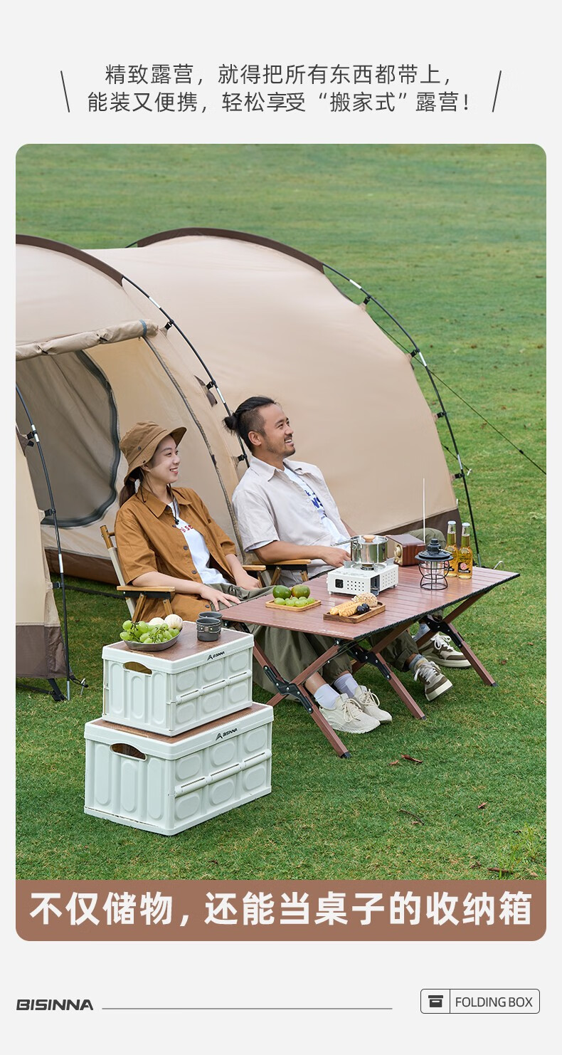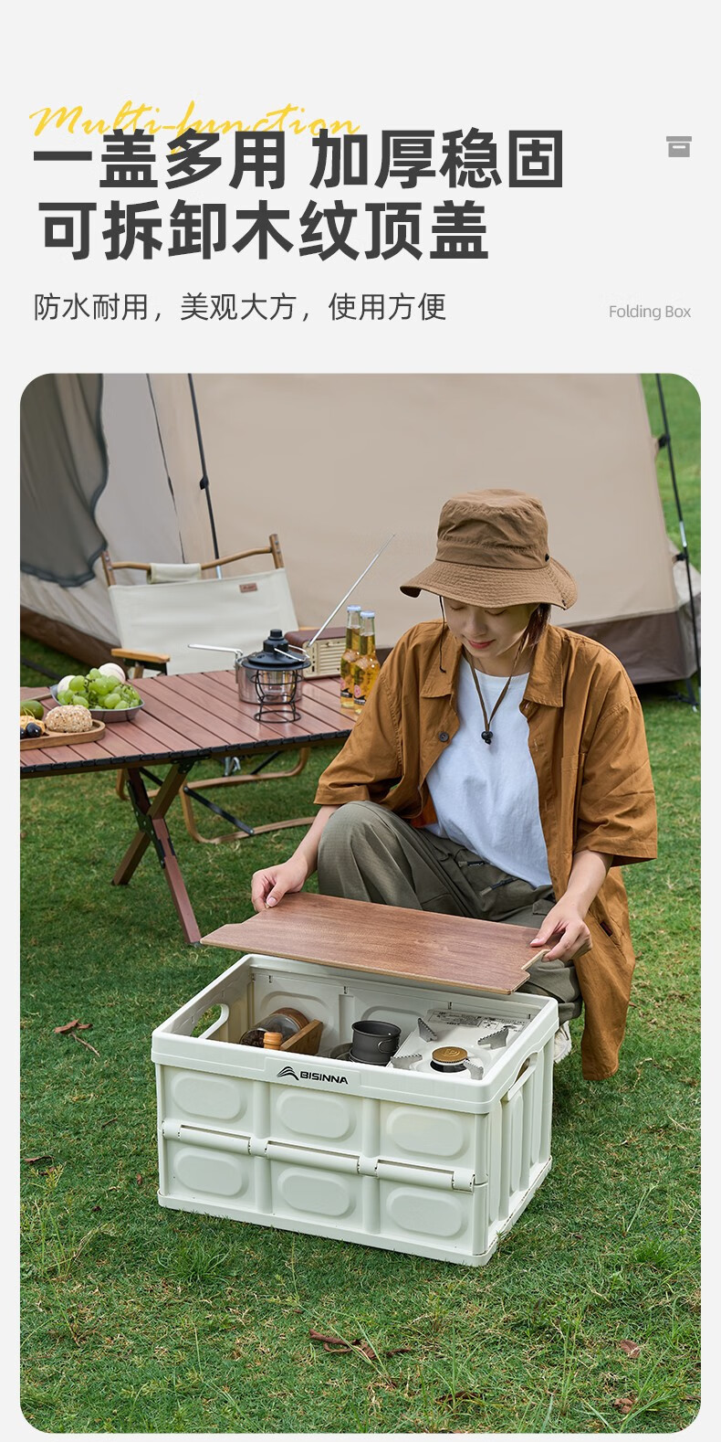 北山狼 收纳箱户外露营可折叠便携野营车储物箱野餐用具杂物箱 30L中号米白