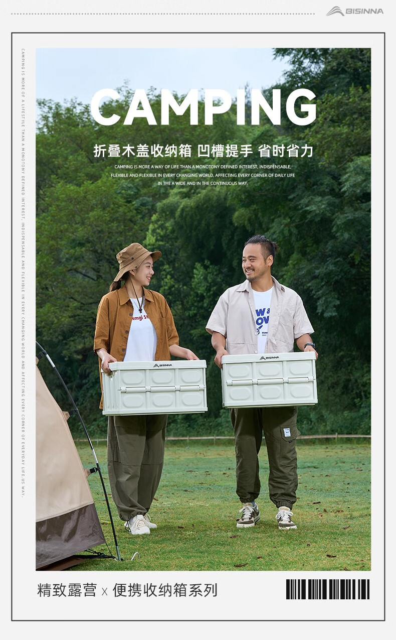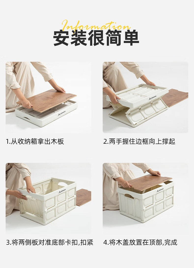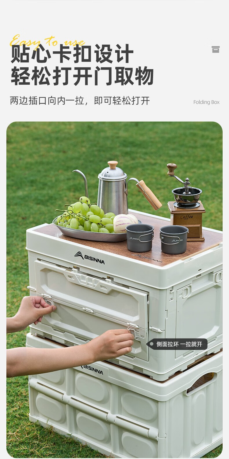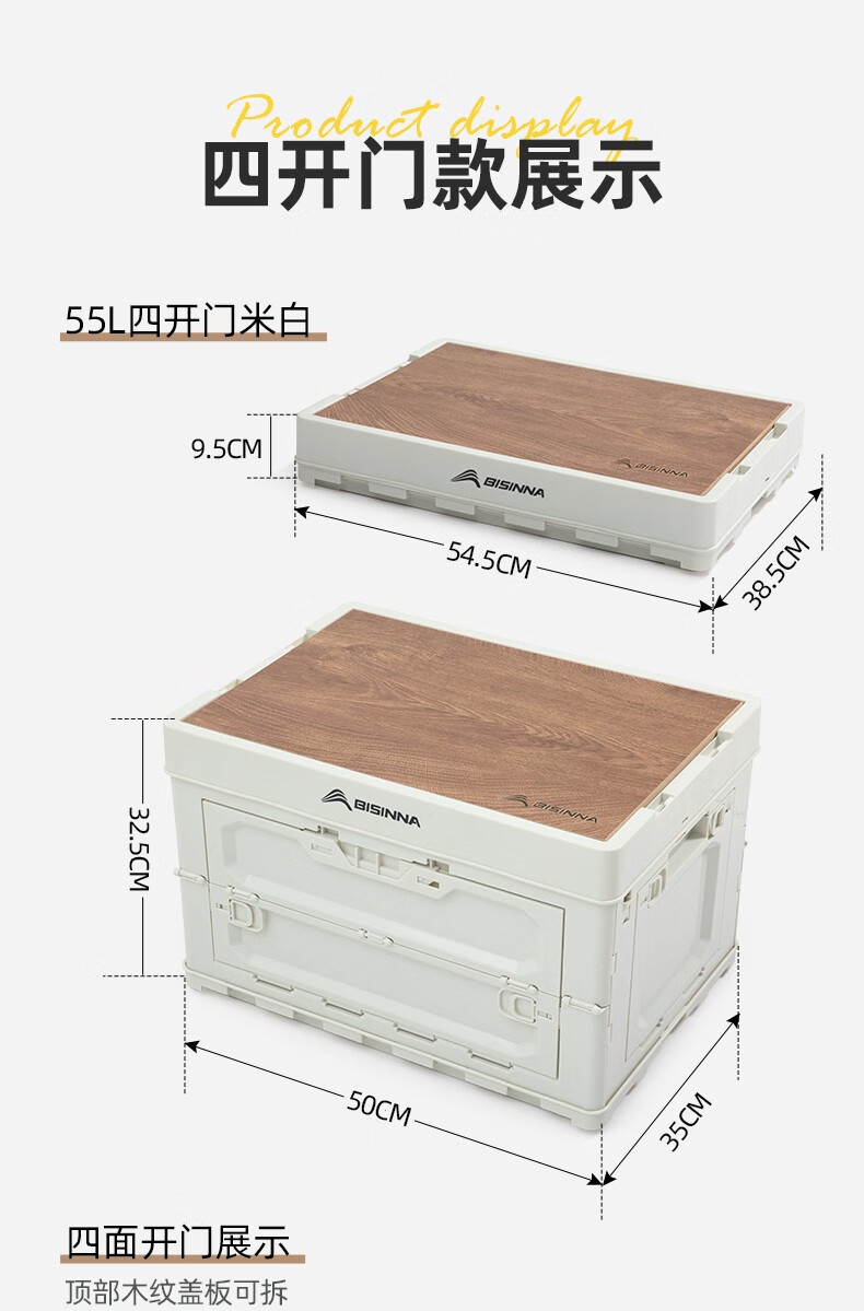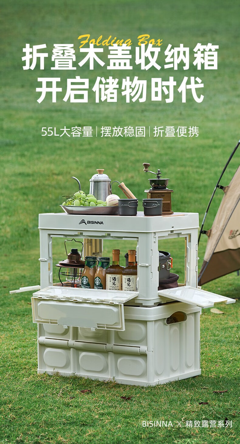 北山狼 收纳箱户外露营可折叠便携野营车储物箱野餐用具杂物箱 30L中号米白
