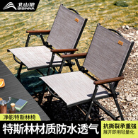 北山狼 户外折叠椅便携式加厚海绵克米特椅加高露营椅子 【升级特斯林面料】大号竹灰色-加高款