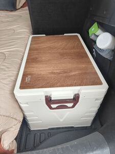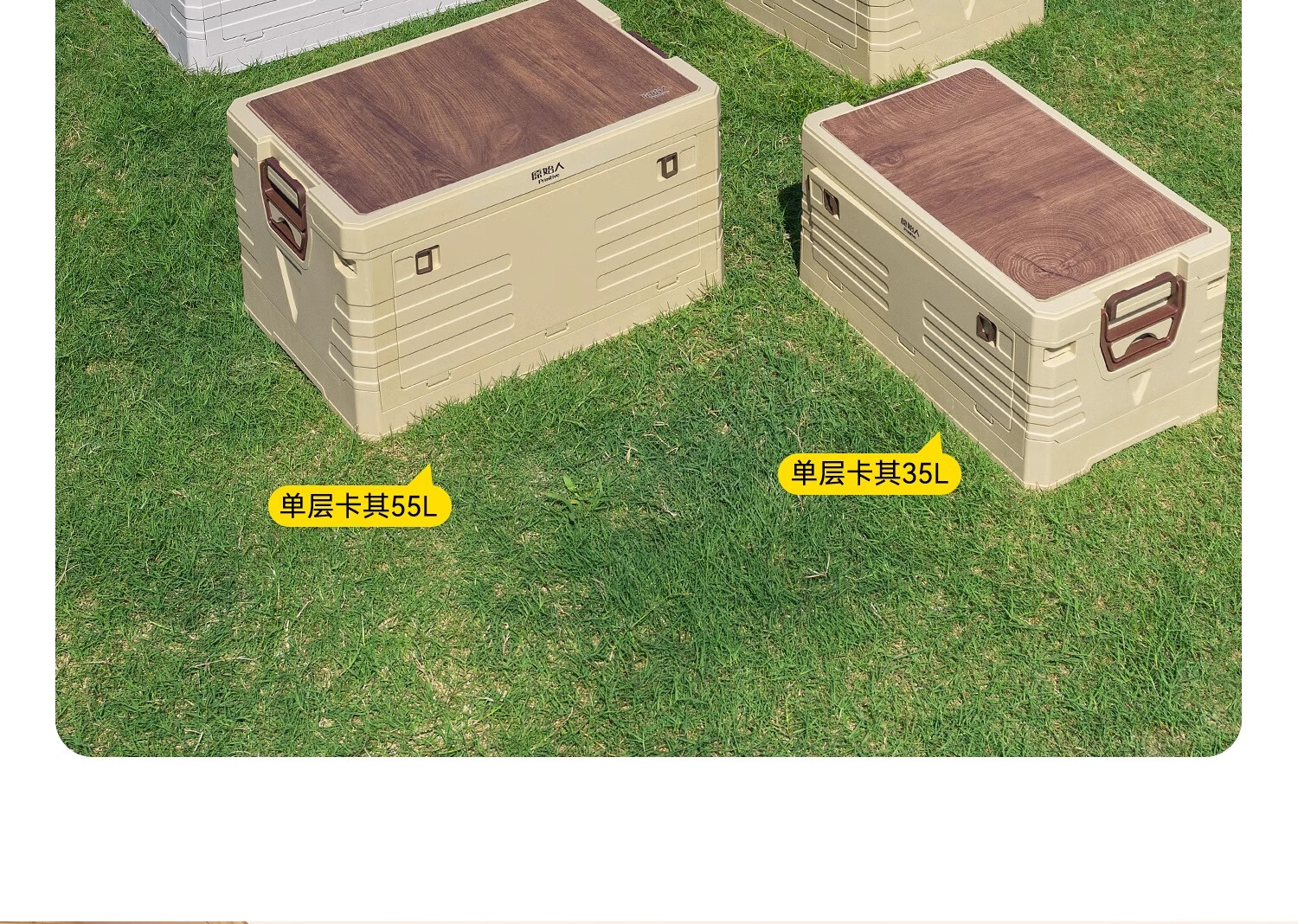 我买的箱子是准备日常收纳储存使用的,但是去露营也超适合,可以说是用处很大,它顶部的盖子是可以打开的,然后侧边也可以打开,拿东西很方便,我买的是55 L这个空间,空间很足,可以装很多东西,提手也还挺好的,顶部这个木板也很高级,很推荐