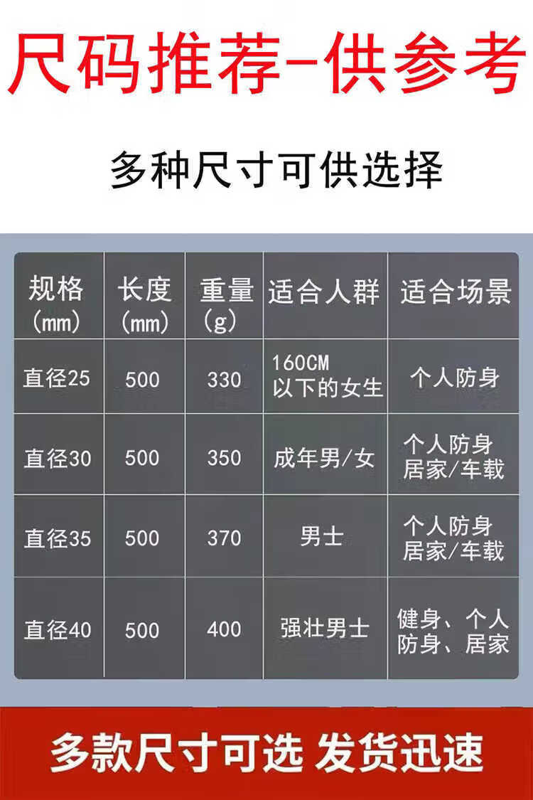 山头林村牛筋棒防身长实心防身车载防卫高弹力胶棍塑料棒聚氨酯棒 男 30*500mm+防滑带