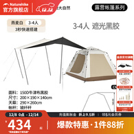 挪客Naturehike露营帐篷户外便携式野营装备防晒天幕自动速开公园帐篷 Ango Picnic/3人/黑胶/天幕版