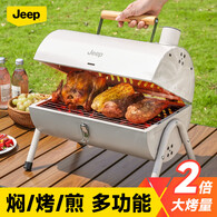 JEEP户外便携式烧烤炉带盖家用双面两用露营炉子烟囱烤肉木炭 白色
