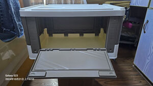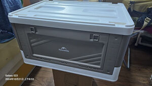 便携性能:整体收纳后大小还是不错的,但由于箱顶的板子是金属的,整体重量还是比较有手感的。 展开类型:展开相对于塑料的全折叠的,更有质感,前后左右整体内折,顶盖有锁止扣,不管是开启还是收纳,整体都会很贴合(桌板除外)