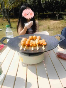 先说火力,打开开关几秒钟烤盘就热得发烫,烤串滋啦作响,很快就能烤到两面金黄,即使是肉厚的鸡肉丸也能快速熟透,火力十足完全不用等。收纳起来也不占地方,以后露营烤肉就靠它了,强烈推荐!