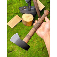 雨轩户外野外便携生存斧80CrV2碳钢镂空全锥形柄脚胡桃木部落高地斧