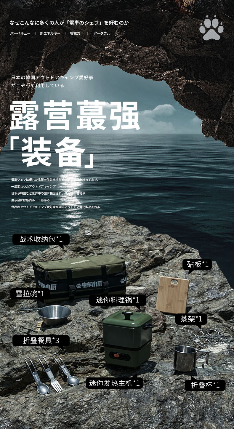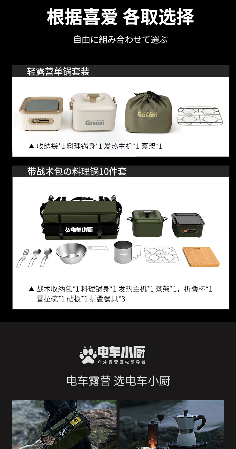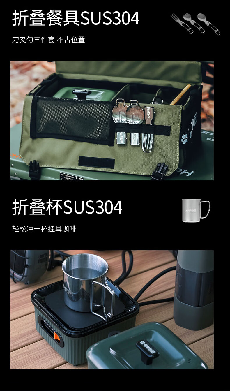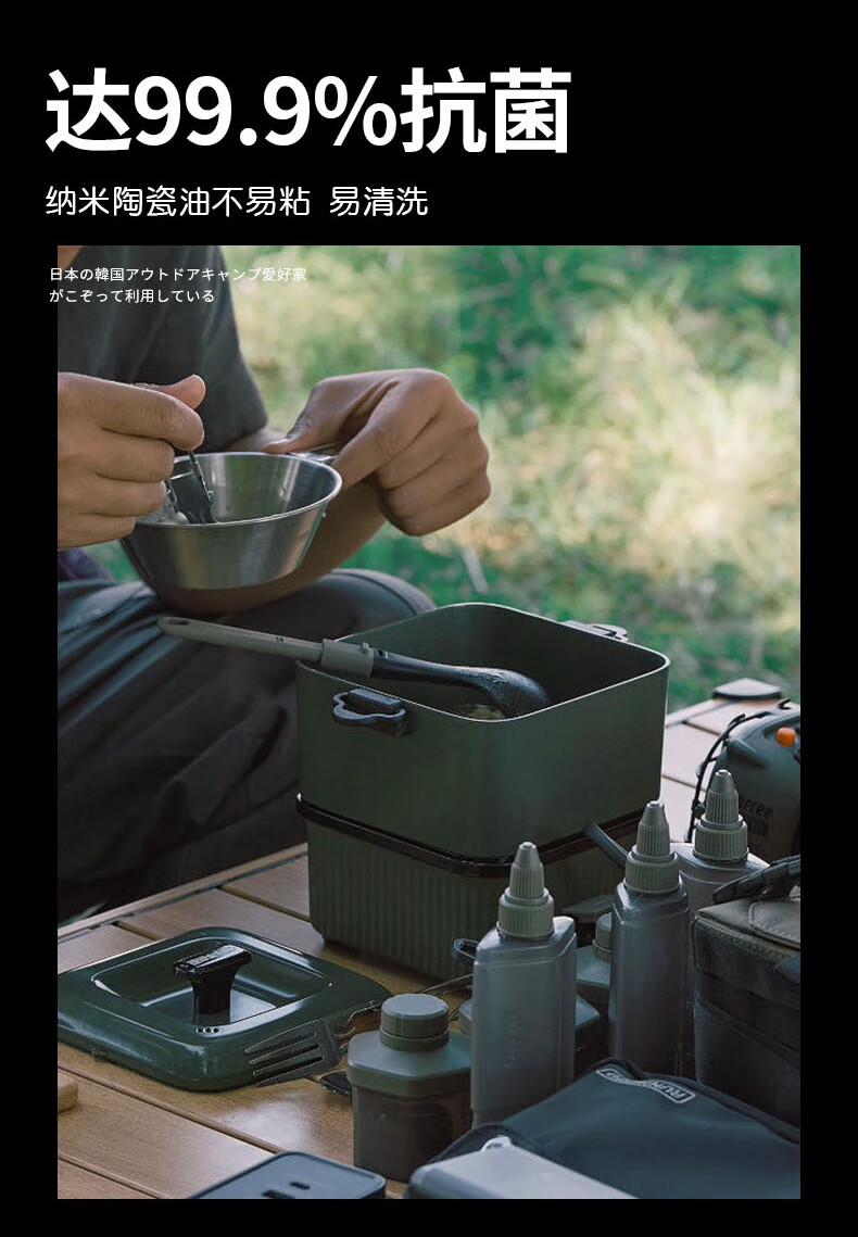 电车小厨露营料理锅套装户外炉具便携式小型野外电煮锅550w功率 橄榄绿10件套