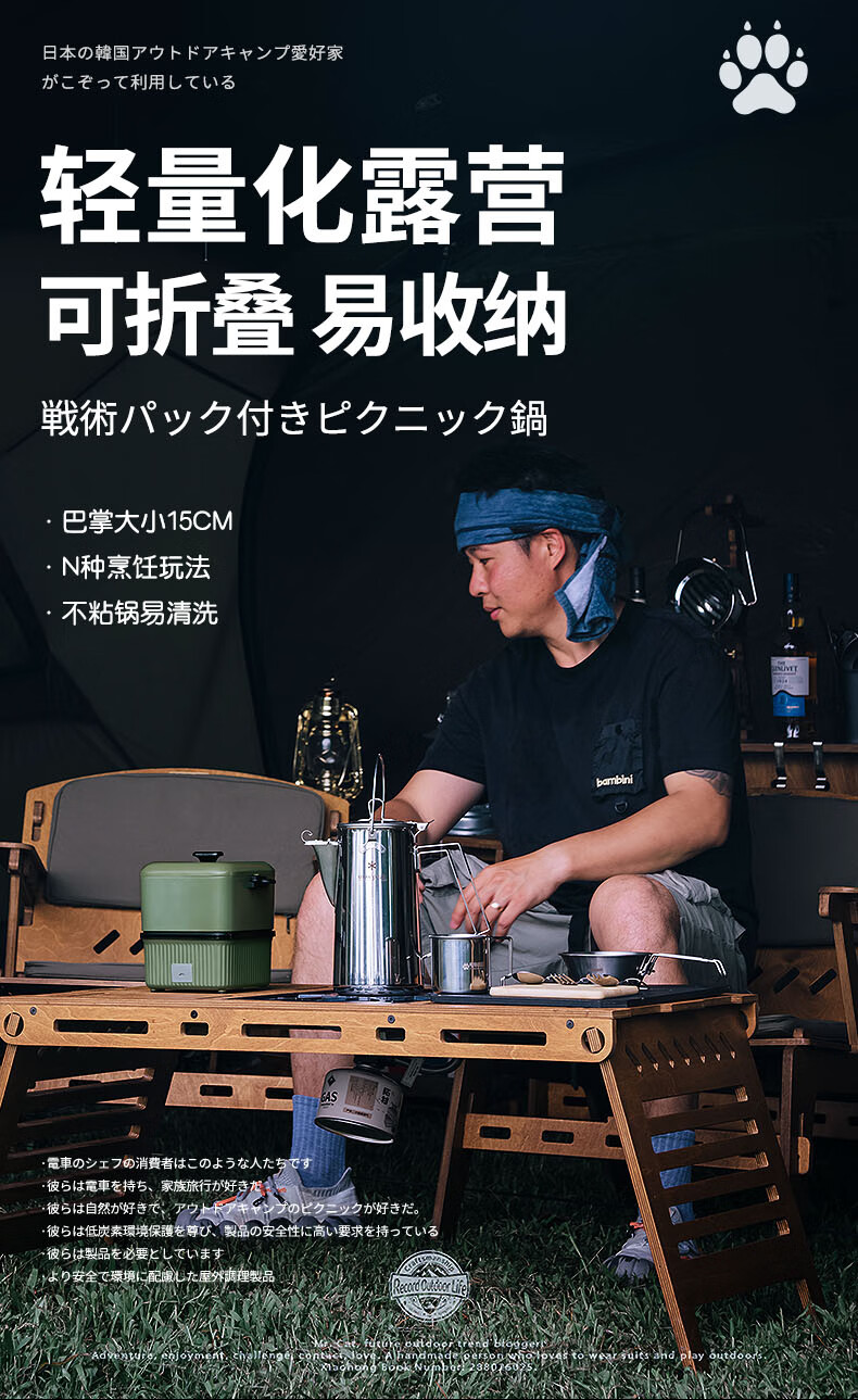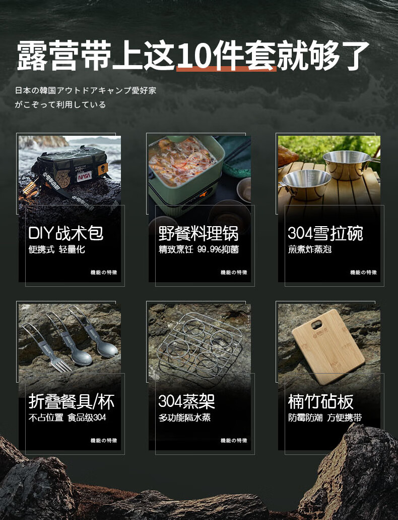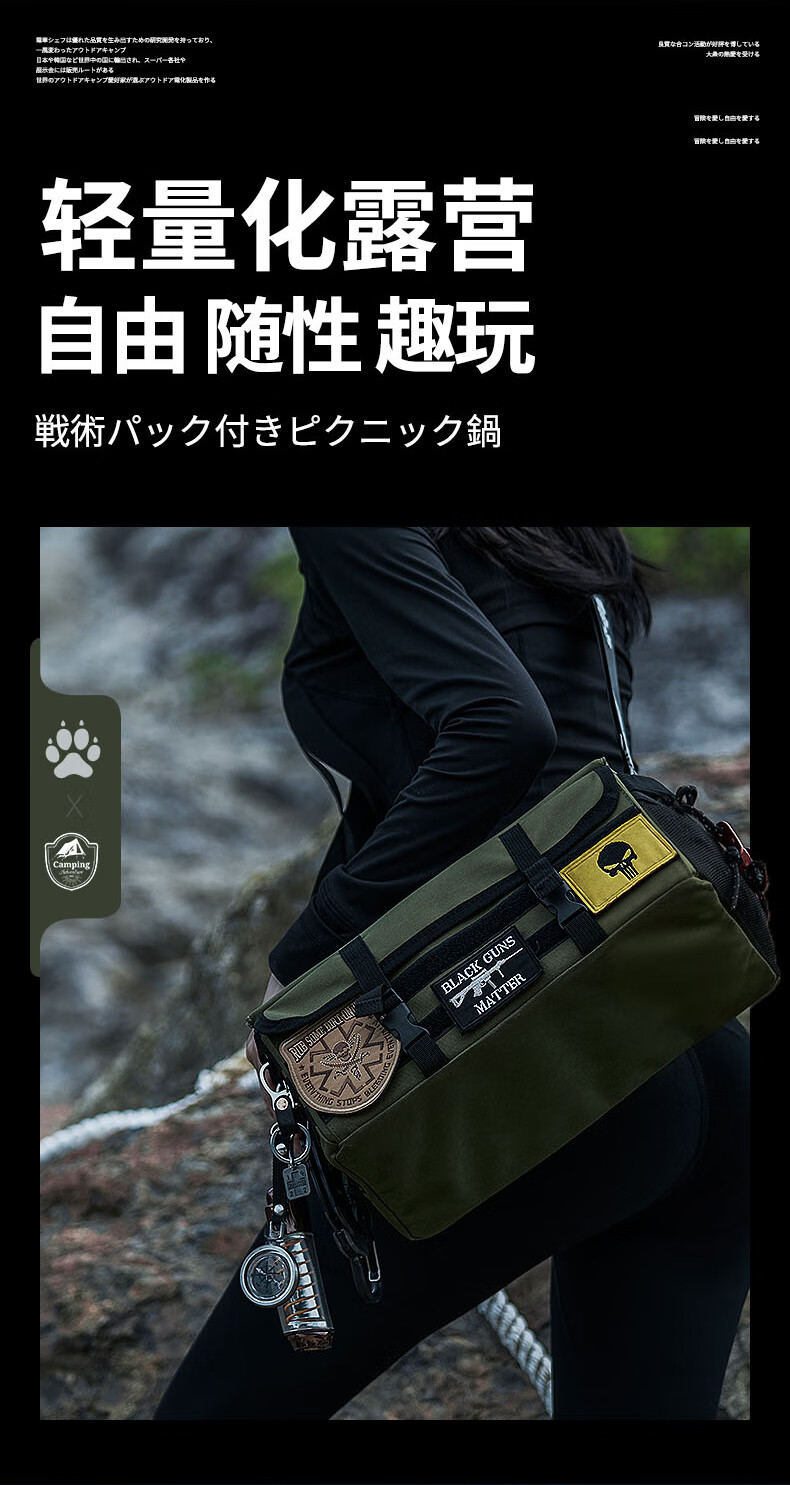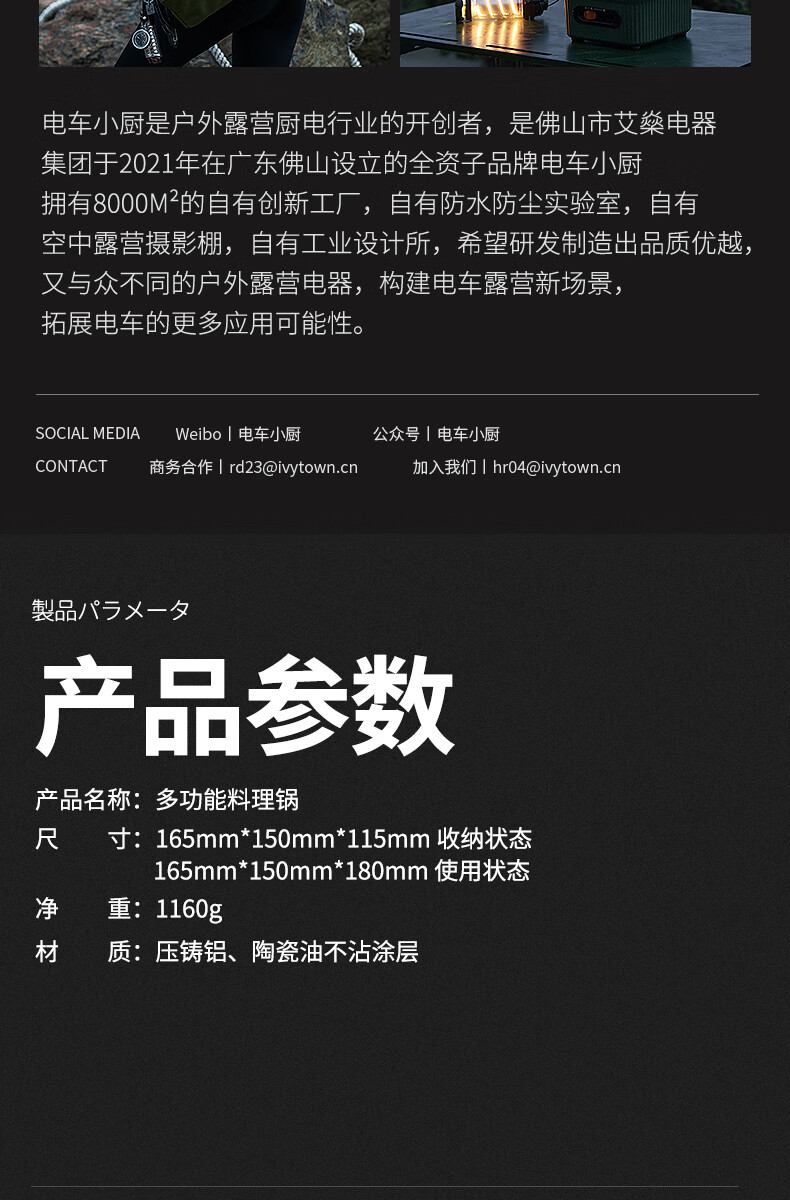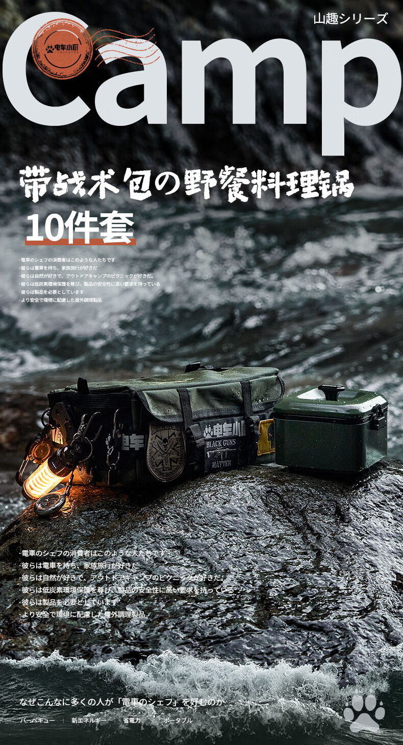 电车小厨露营料理锅套装户外炉具便携式小型野外电煮锅550w功率 橄榄绿10件套
