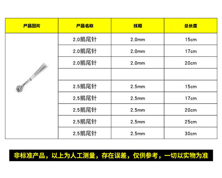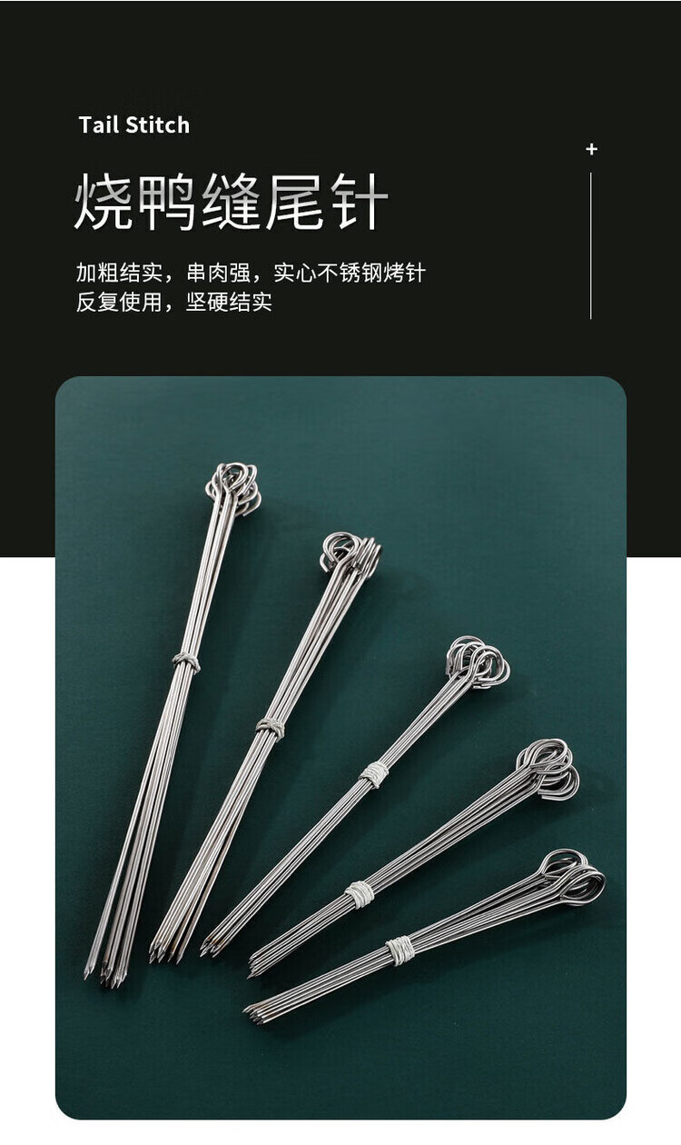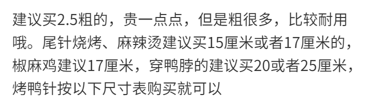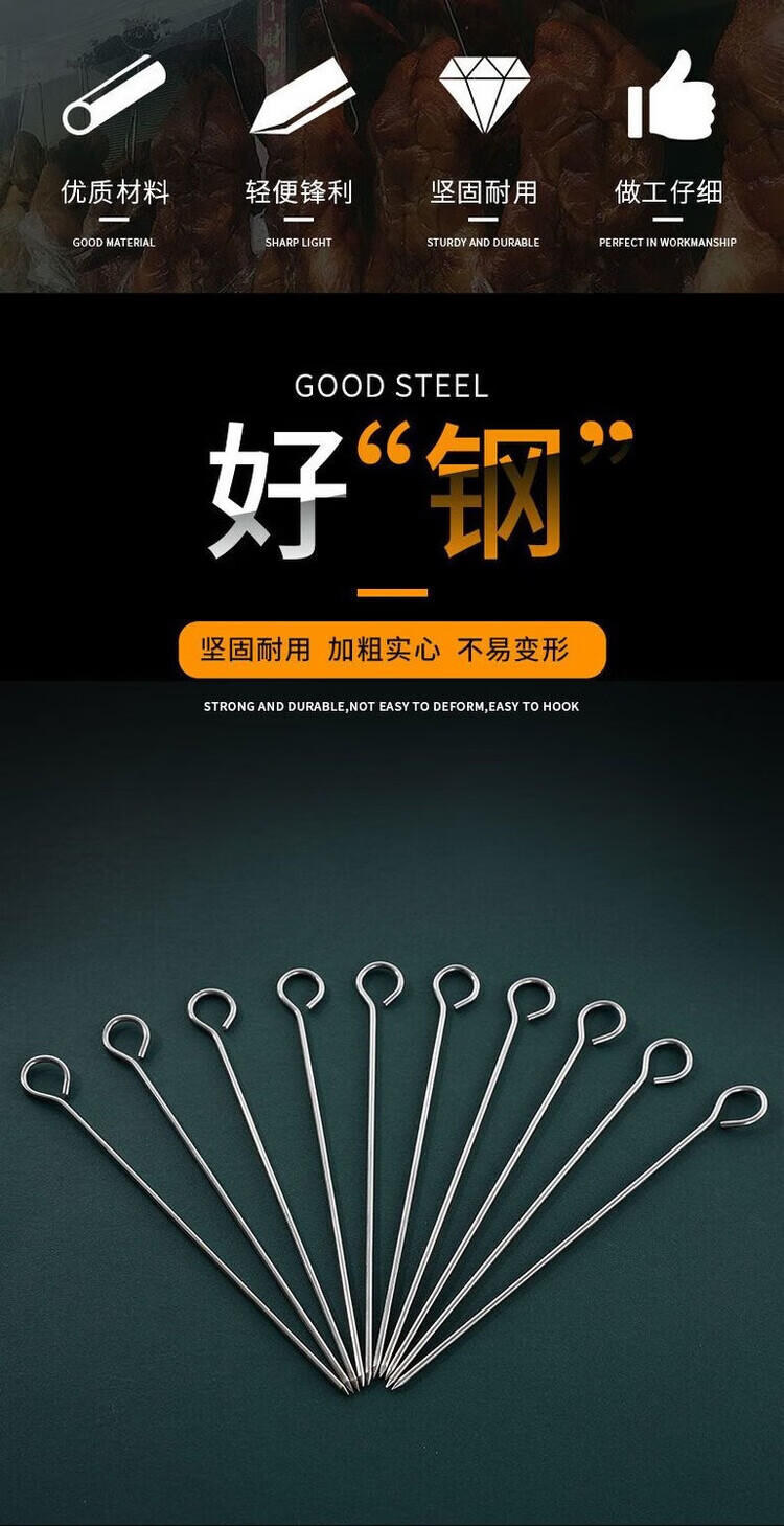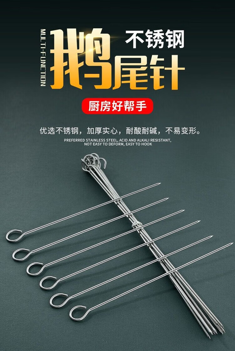 树奢烤肉签子不锈钢签316烤鸭缝尾针麻辣烫串钢钎子硬 粗2.5厘.长20cm尾针50根
