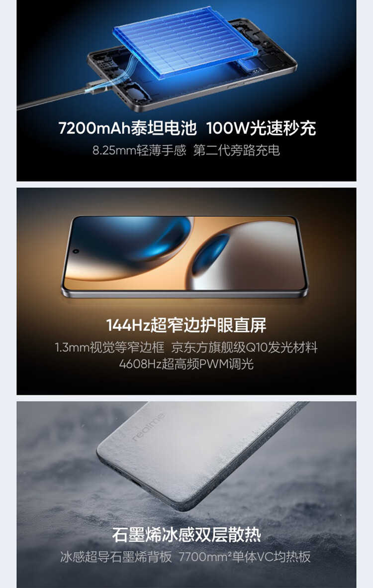 真我(realme)真我GT7智能手机 天玑9400+ 100W闪充7200毫安大电池【原装正品】 石墨烯雪 16+512GB